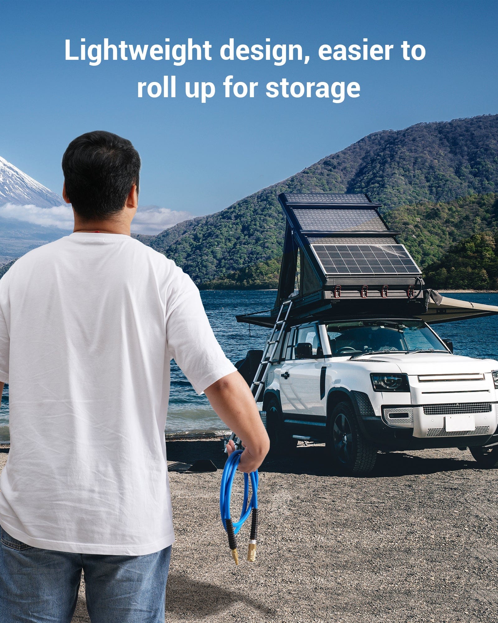 【Easy to Rull Up & Kink Resistant】The tube is soft and easy to roll up, allowing for convenient storage after use. Bend restrictors are installed at both ends to reduce kinks and enhance the durability of the rubber air hose.