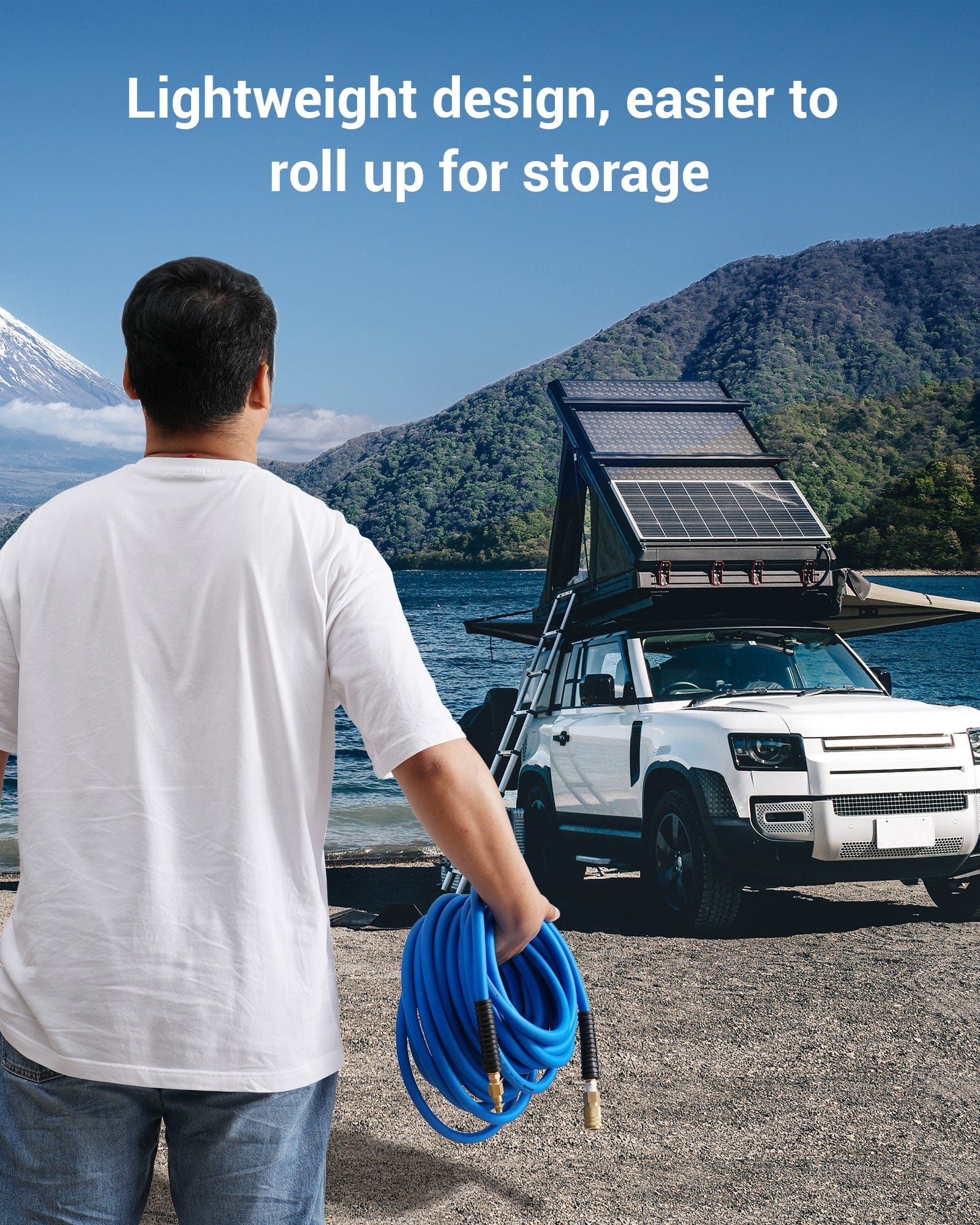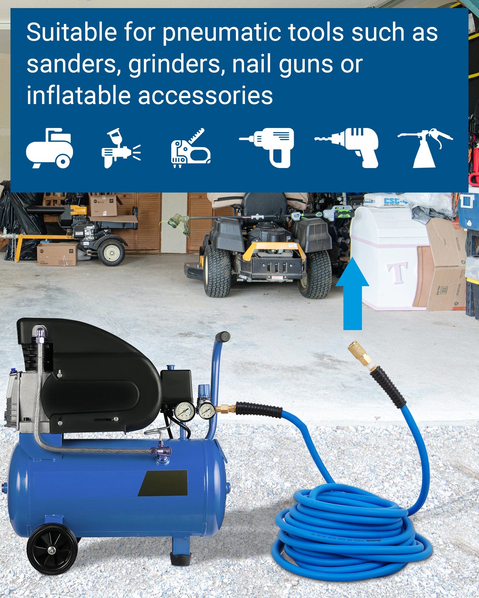 [Lightweight & Flexible] Providing enhanced control and increased flexibility compared to a conventional air compressor hose, our 3/8" x 50ft pneumatic hose weighs merely 2.5kg, very lightweight and easy to access at any time