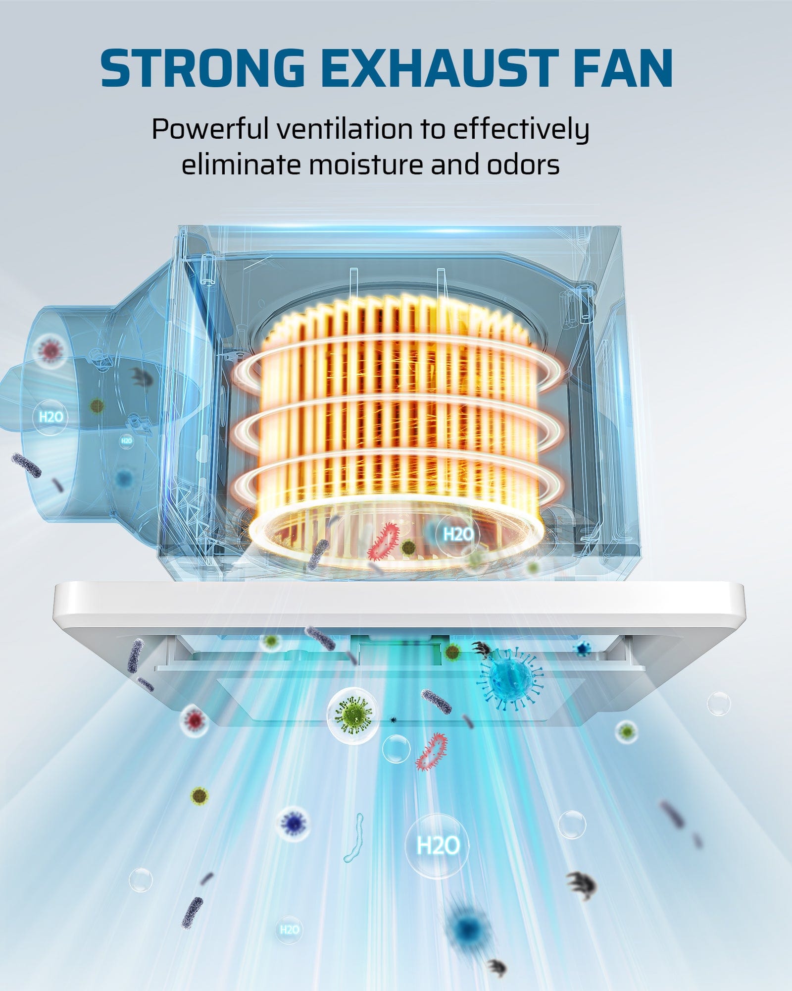 【Powerful Airflow & Quiet】This bathroom fan with light has an impressive airflow of 80 CFM, while maintaining a low noise level of just 1.5 Sones. It effectively eliminates moisture and odors, leaving your bathroom fresh and comfortable.