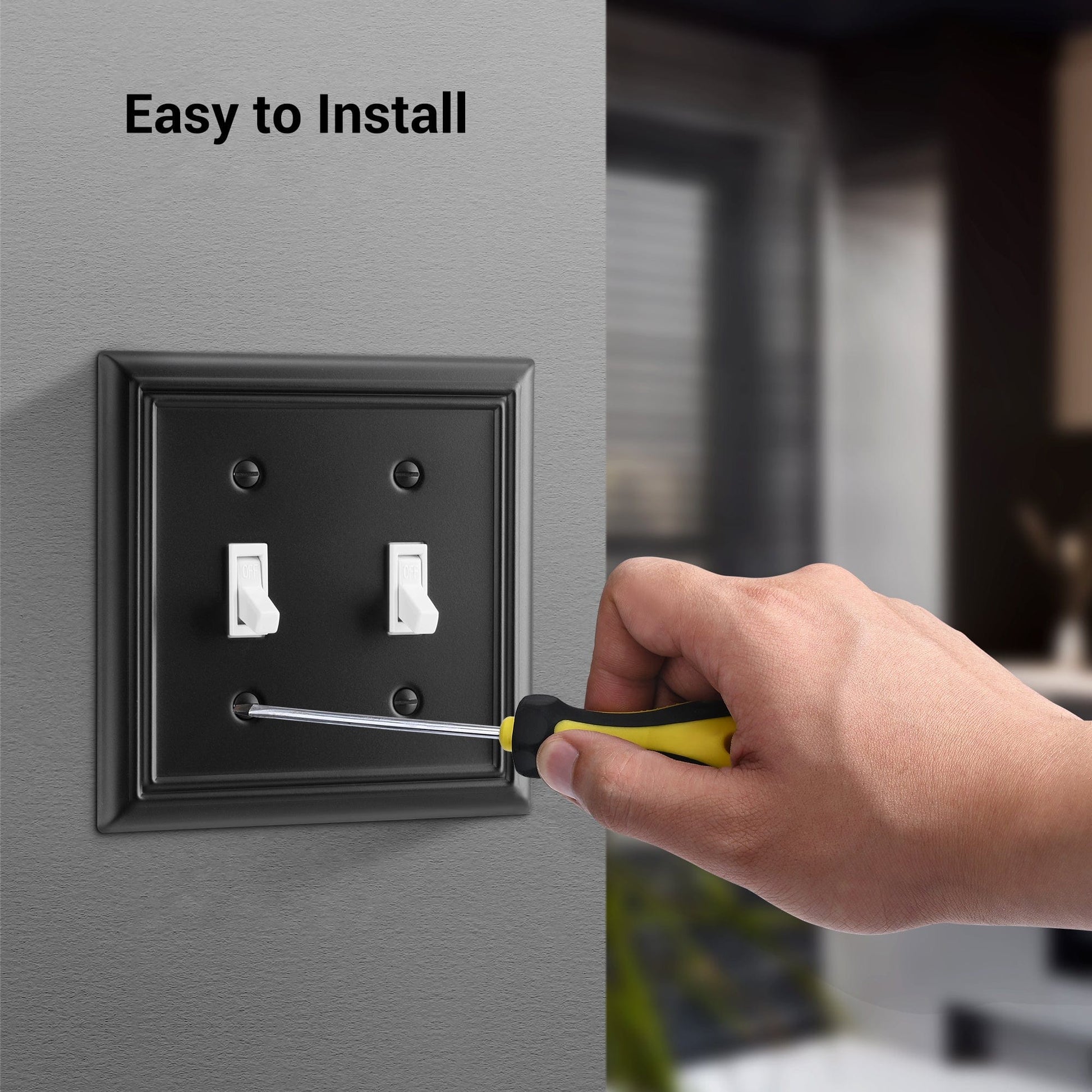 The metal light switch plate has a profile black finish which will give your home a classic look. With the metal material, never worry about rustiness. Besides, the smooth surface makes it easy to clean. Perfect for bathroom, living room, office, or other places you need.