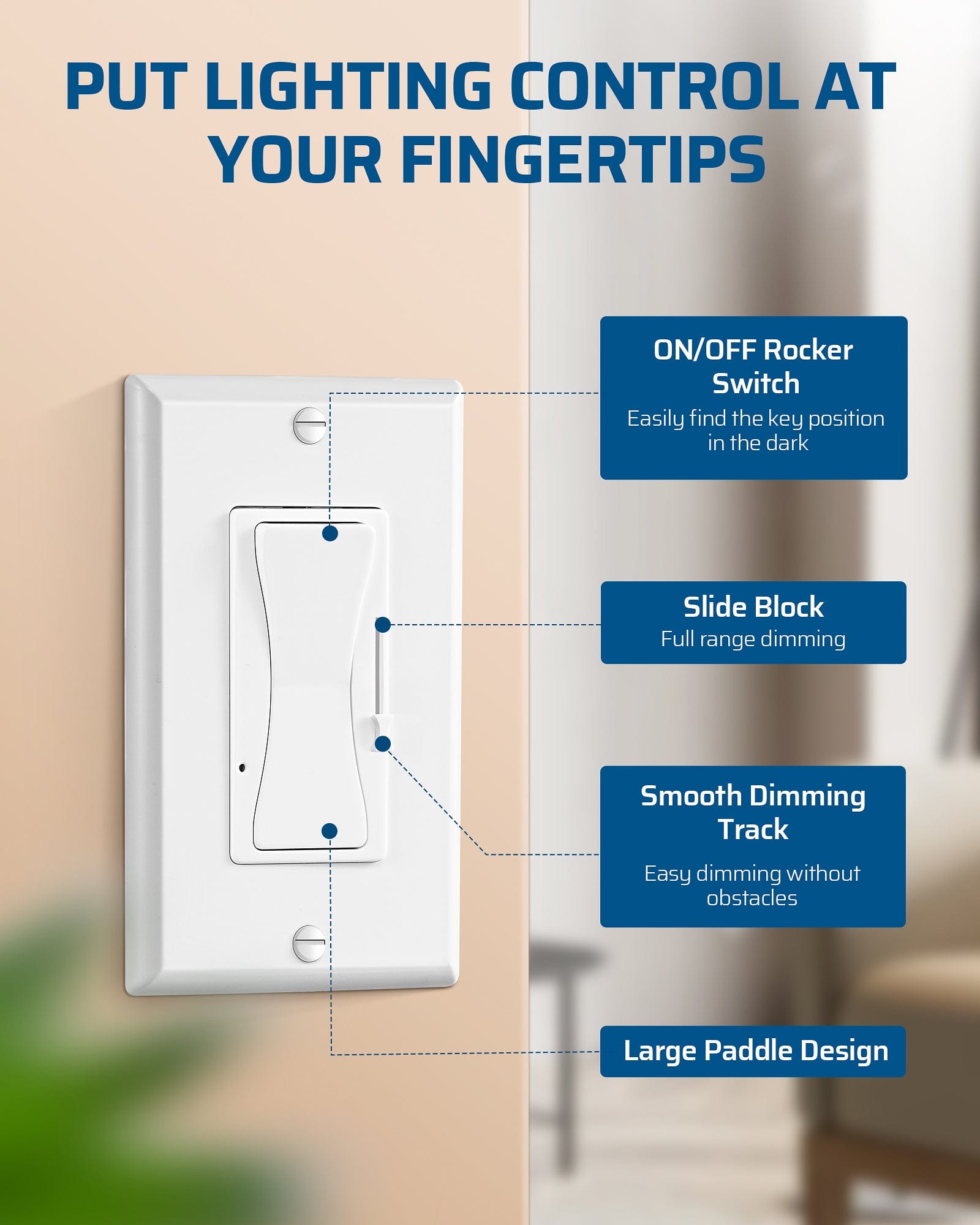 【Energy Efficient & Reliable】ETL certified, the PC casing ensures stable operation in temperatures ranging from -20°C to 60°C; environmentally friendly and long-lasting, this LED light dimmer switch provides reliable performance under a wide range of conditions