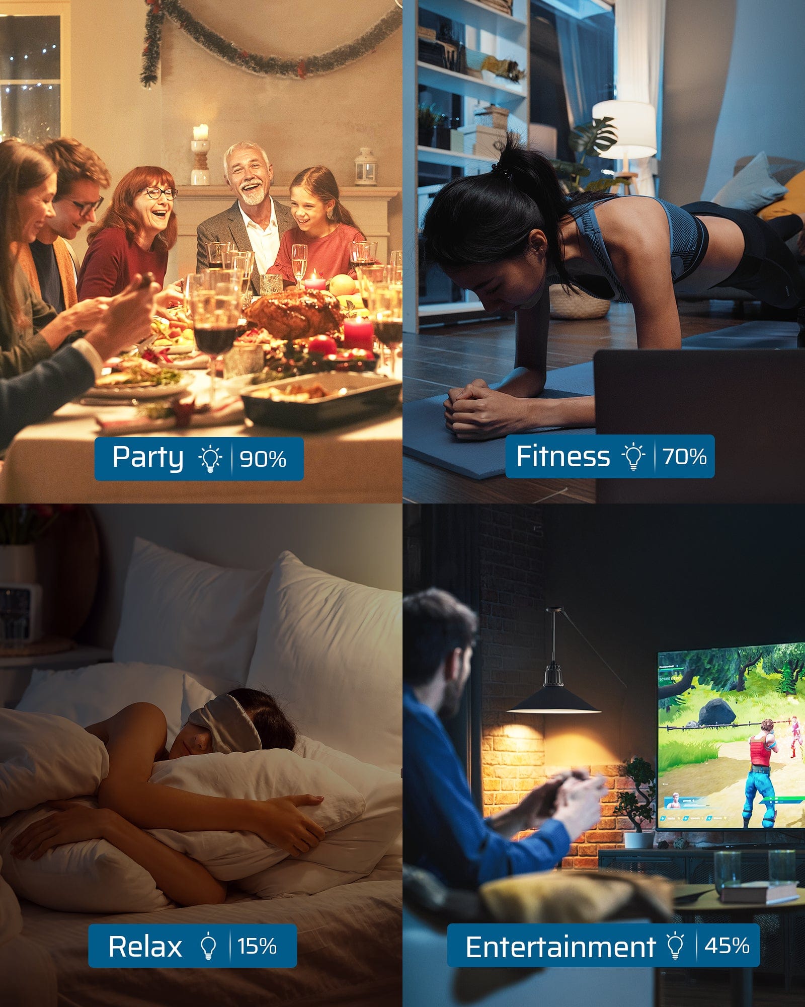 【Wide Applications】Whether in your home's living room or bedroom, or in commercial spaces like dining areas, parties, offices, entertainment zones, gyms, or relaxation areas, this light dimmer switch excels in switching and adjusting brightness; it ensures a comfortable lighting experience, even in the dark