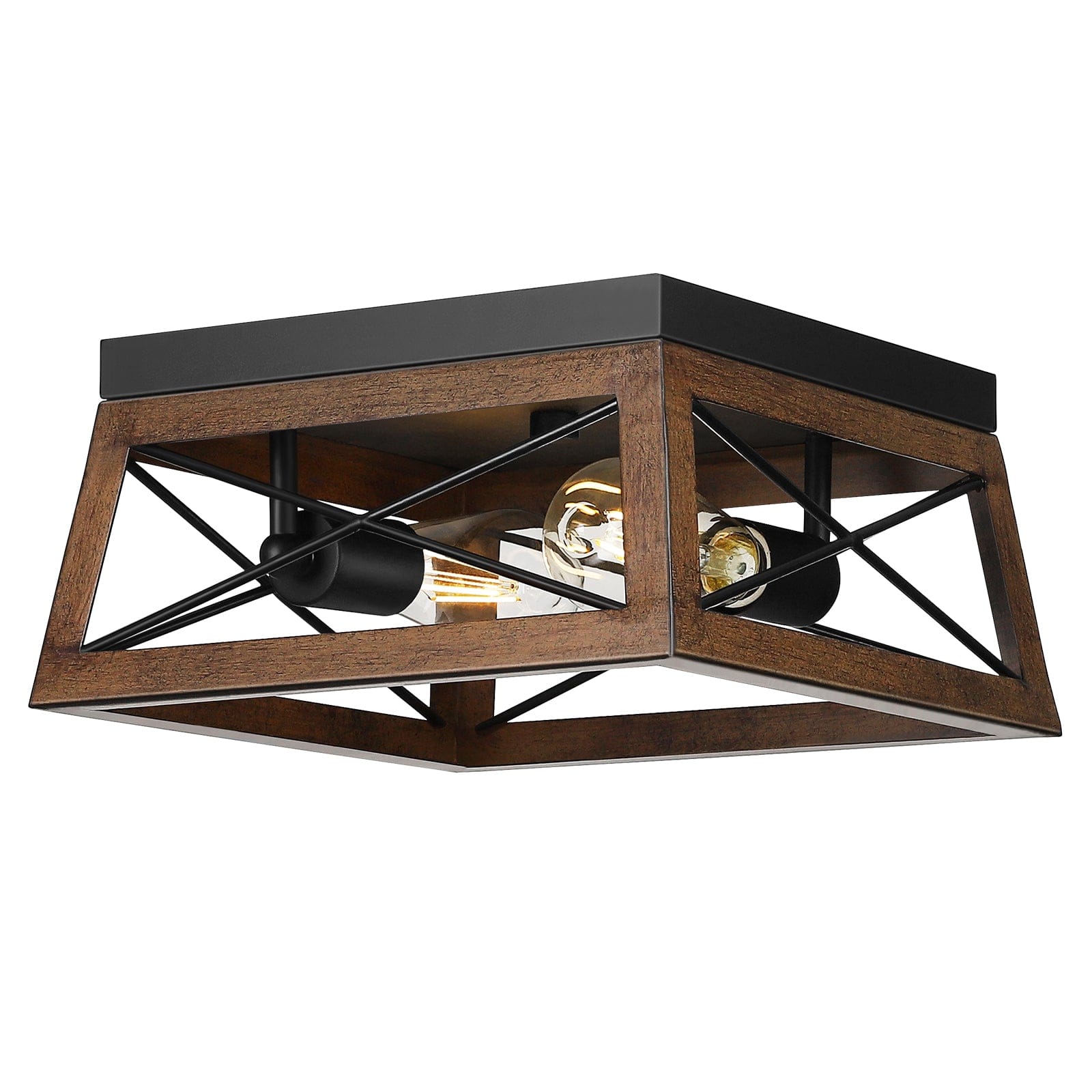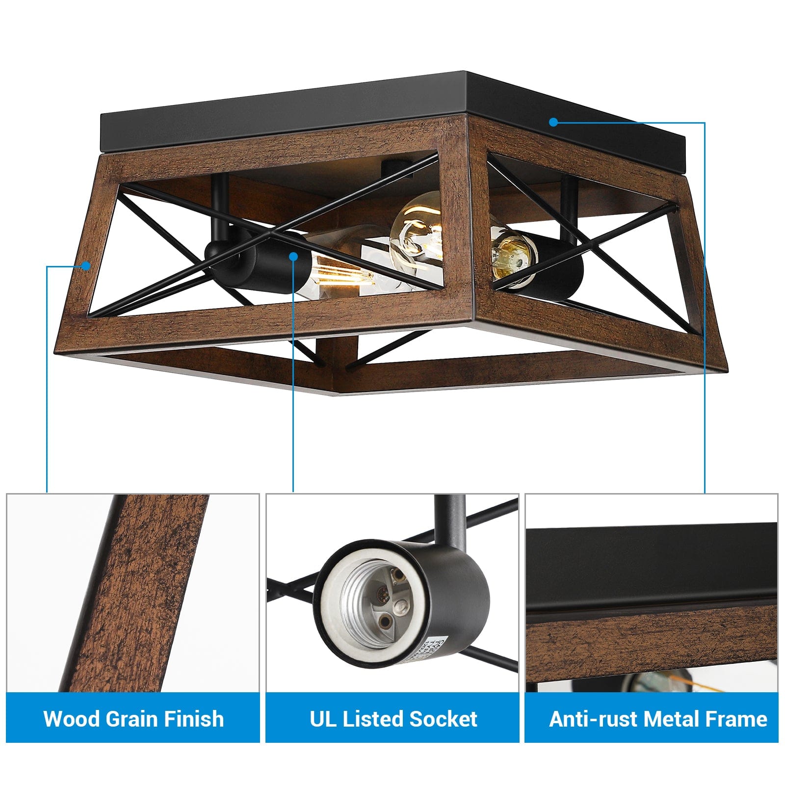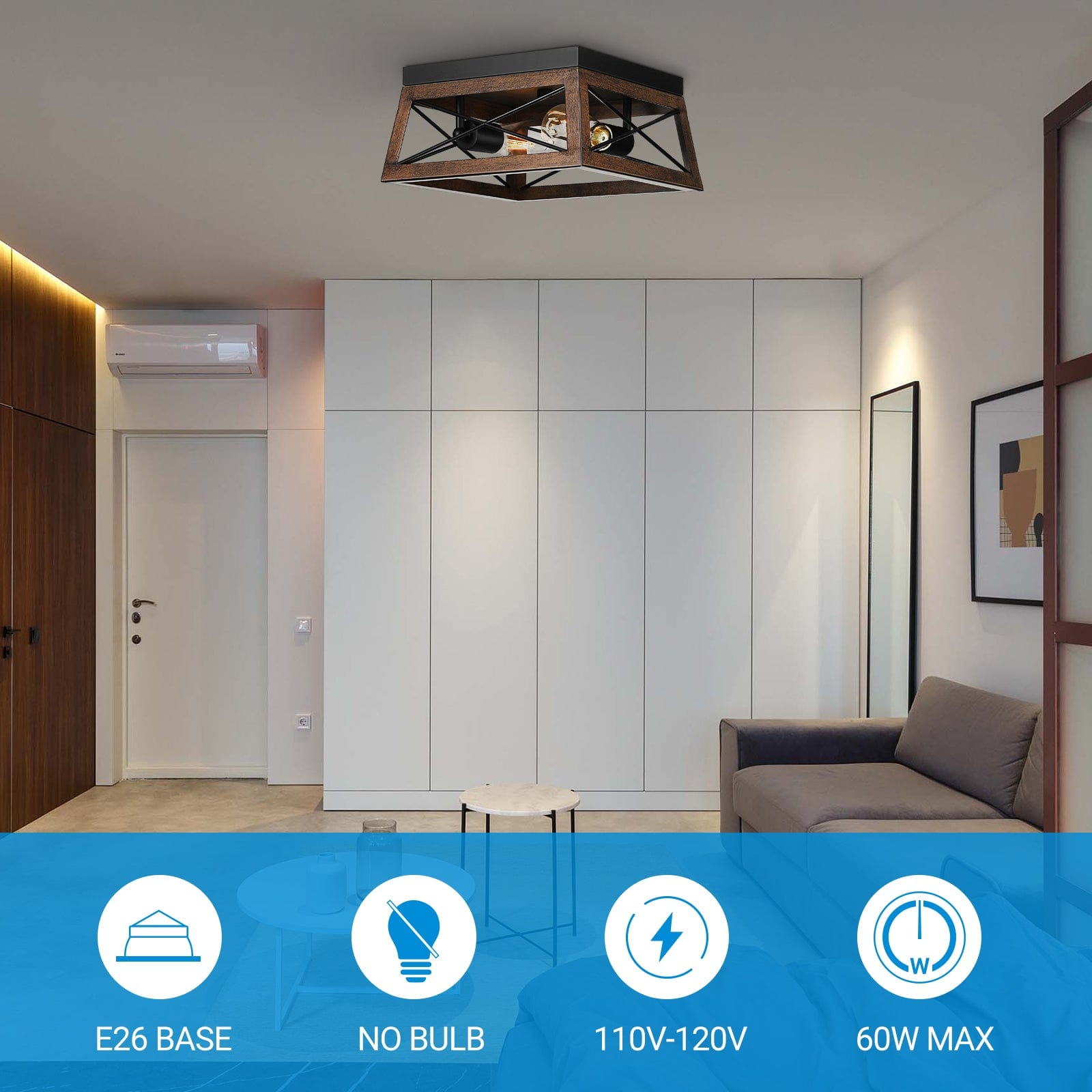 DEWENWILS Farmhouse Ceiling Light Fixture, Metal Flush Mount Ceiling Light with Wood Grain Finish, 2-Lights Ceiling Lamp for for Hallway, Entryway, Kitchen, Foyer-HFCL02B