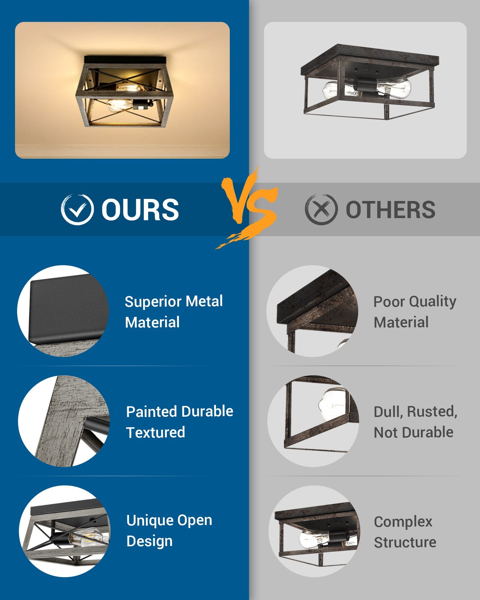 【Wide Application】A two-light bulb design is sufficient to provide ample lighting. An open-caged ceiling lamp is easier to clean and does not require cleaning glass or catching bugs. It is ideal for various areas such as the kitchen, dining room, living room, laundry room, entryway, hallway, and pantry.