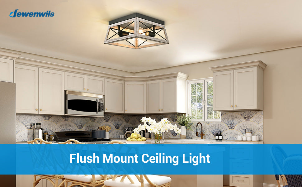 DEWENWILS Farmhouse Flush Mount Ceiling Light, Metal Ceiling Light Fixture with Wood Grain Finish, 2-Lights Hallway Light Fixture Ceiling Mount for Entryway, Foyer, Dining Room-HFCL02C
