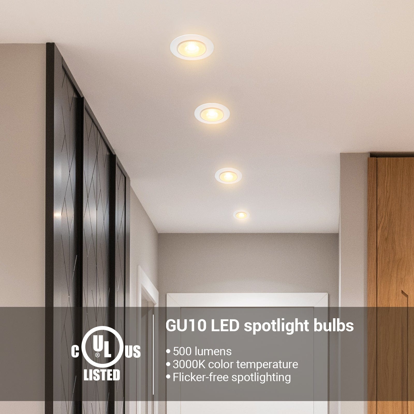 【Super Bright】With a brightness of 500LM, these GU10 LED spotlights emit a warm 3000K glow, free from ghosting. They are perfect for track lights and spotlights in living rooms, bathrooms, bedrooms, and kitchens. Illuminate your space with a cozy and inviting ambiance.