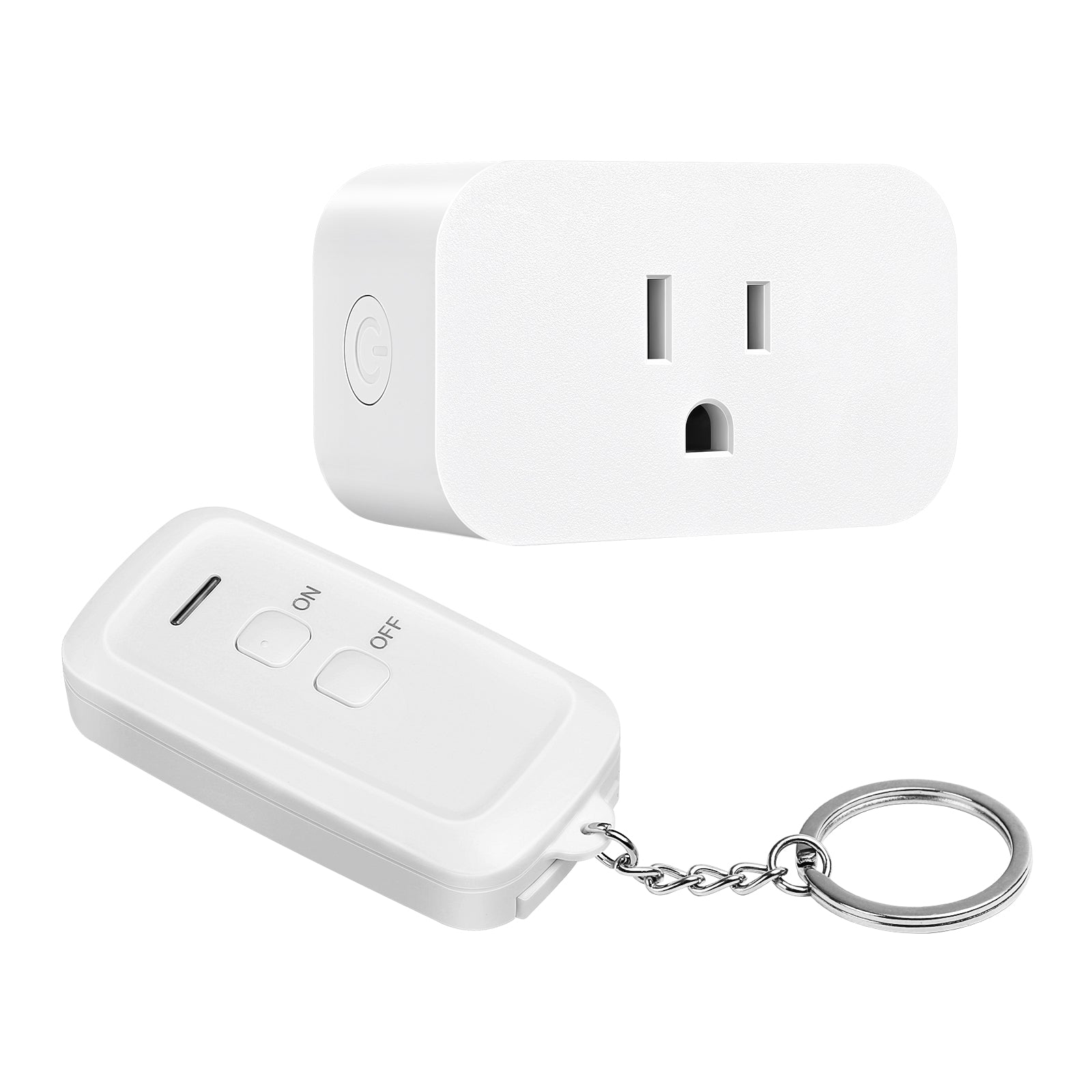 【KeyChain Remote Control &100 FT Control Range】This Remote Control Outlet comes with a keychain, making it easy to hang up and store. Its strong RF signal works through walls and doors up to 100 feet in open areas, without interfering with other devices. Enjoy convenient control of your appliances with this reliable and compact remote light switch.