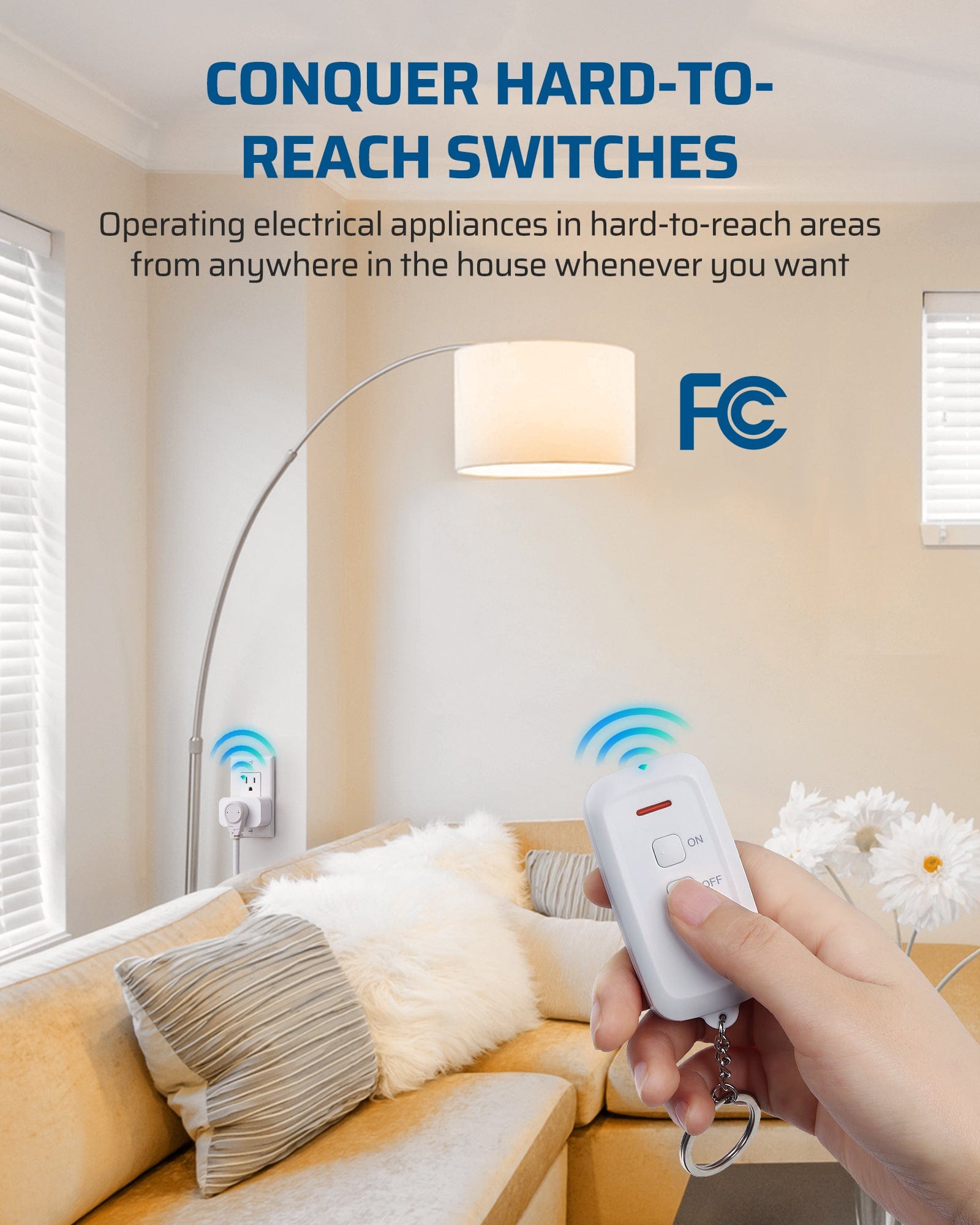 【FCC Certificated & Warranty】This Remote Control Outlet is designed for most electrical appliances with up to 125V, 60Hz, 15A, 1875W Resistive capacity. It's FCC listed, ensuring safety and quality assurance. Enjoy a 1-year warranty and dedicated service team support within 24 hours for any questions. Experience peace of mind with this reliable remote light switch.