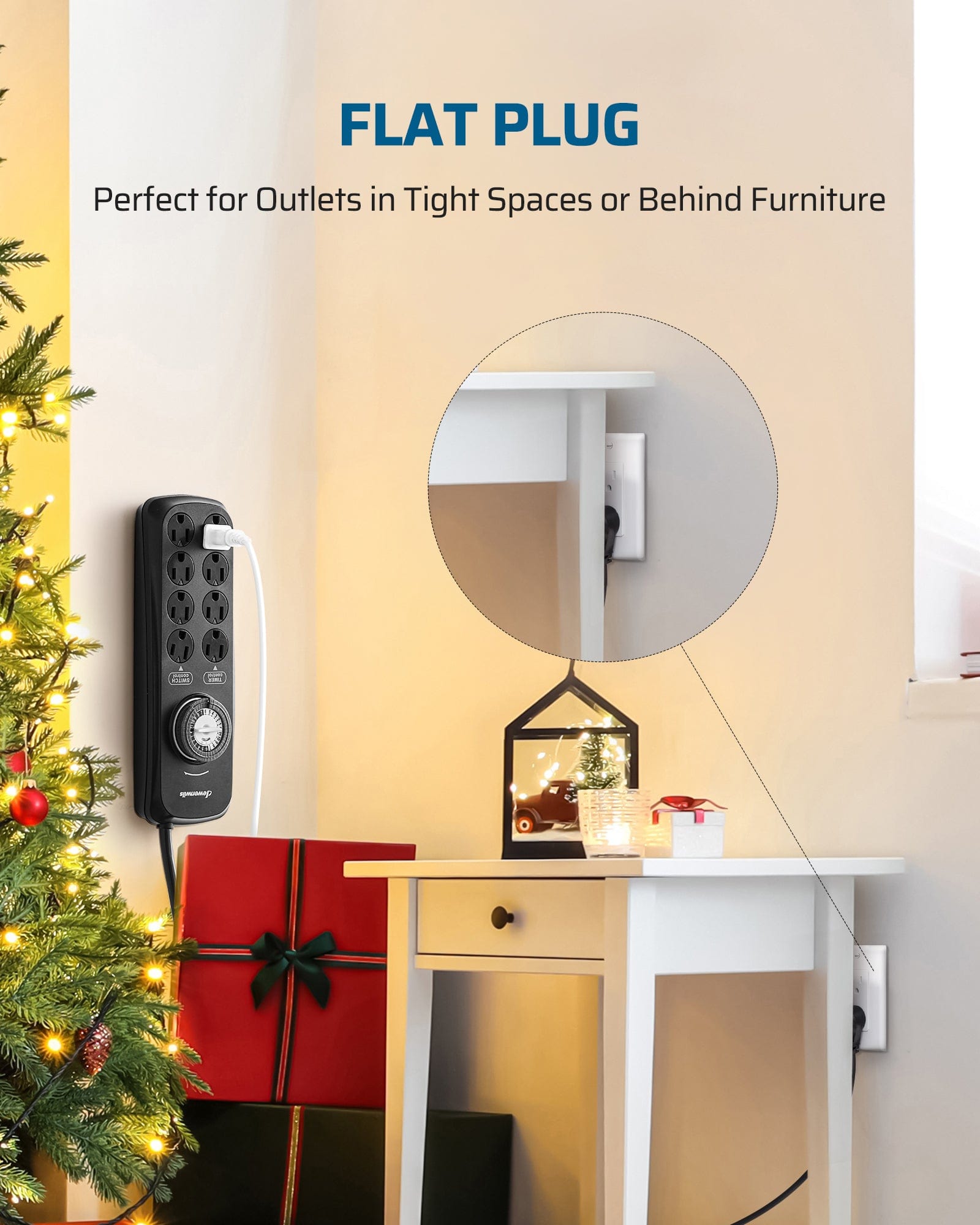 DEWENWILS Mechanical Timer Power Strip with 8 Outlets, 6FT Power Cord & Flat Plug, Overload Protection Mechanical Timer, Outlet Timer Indoor for Tanks, Aquarium, Grow Lights, Reptile Light-HPST16N