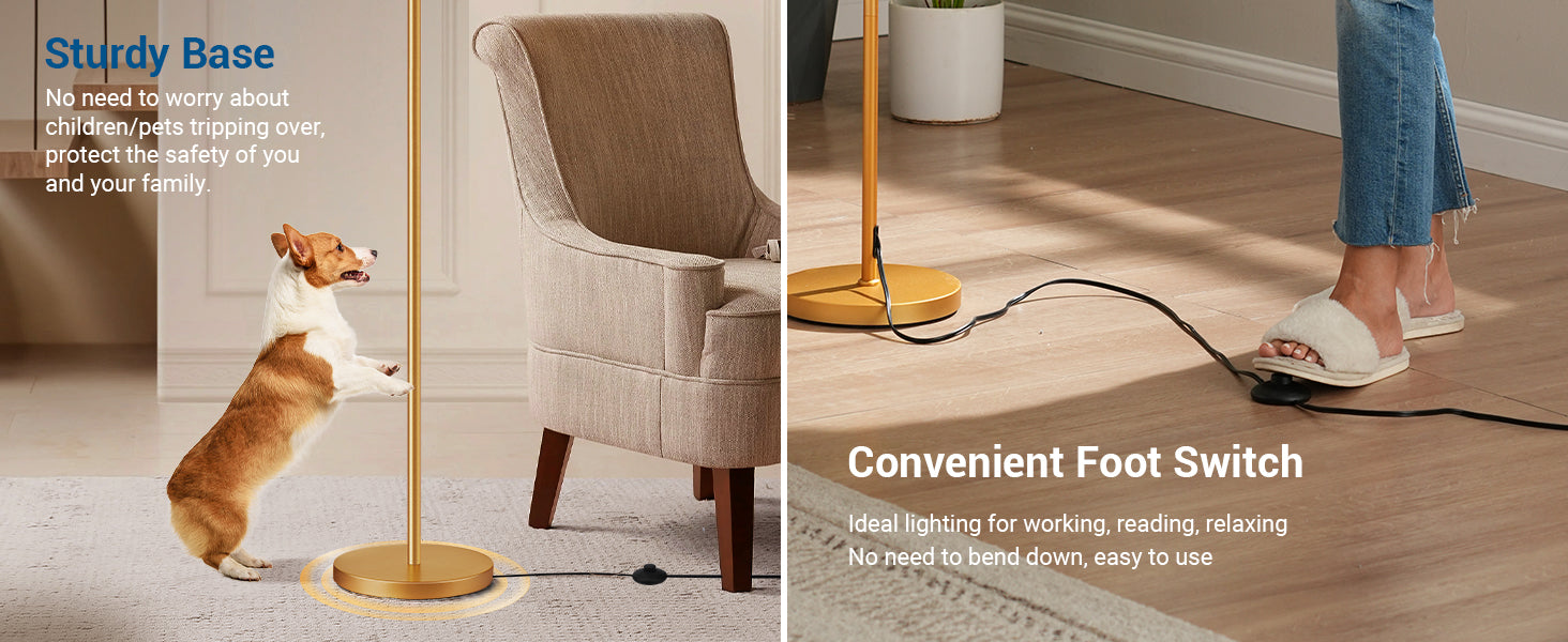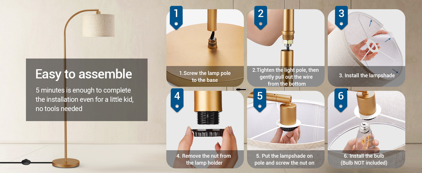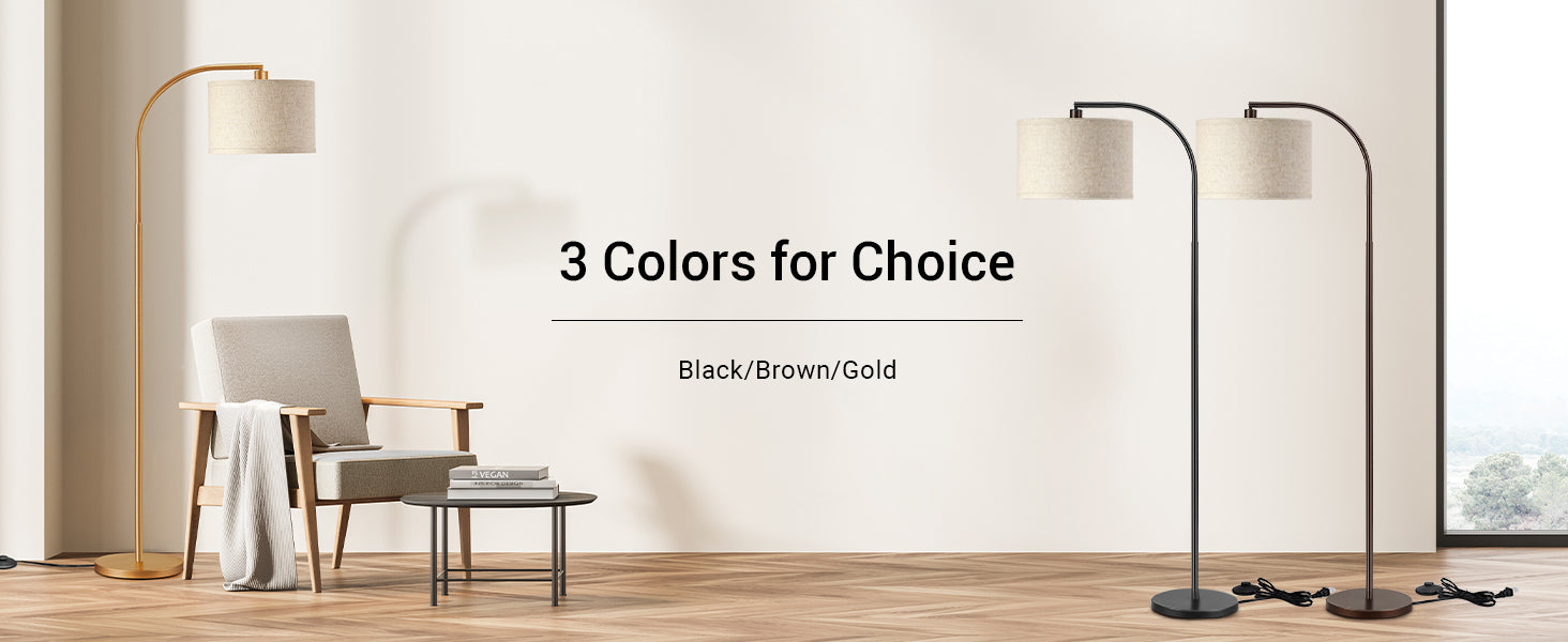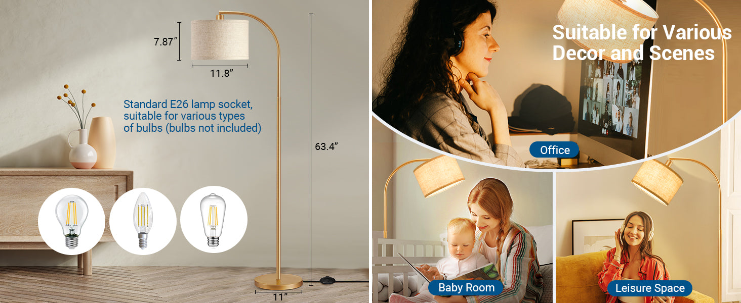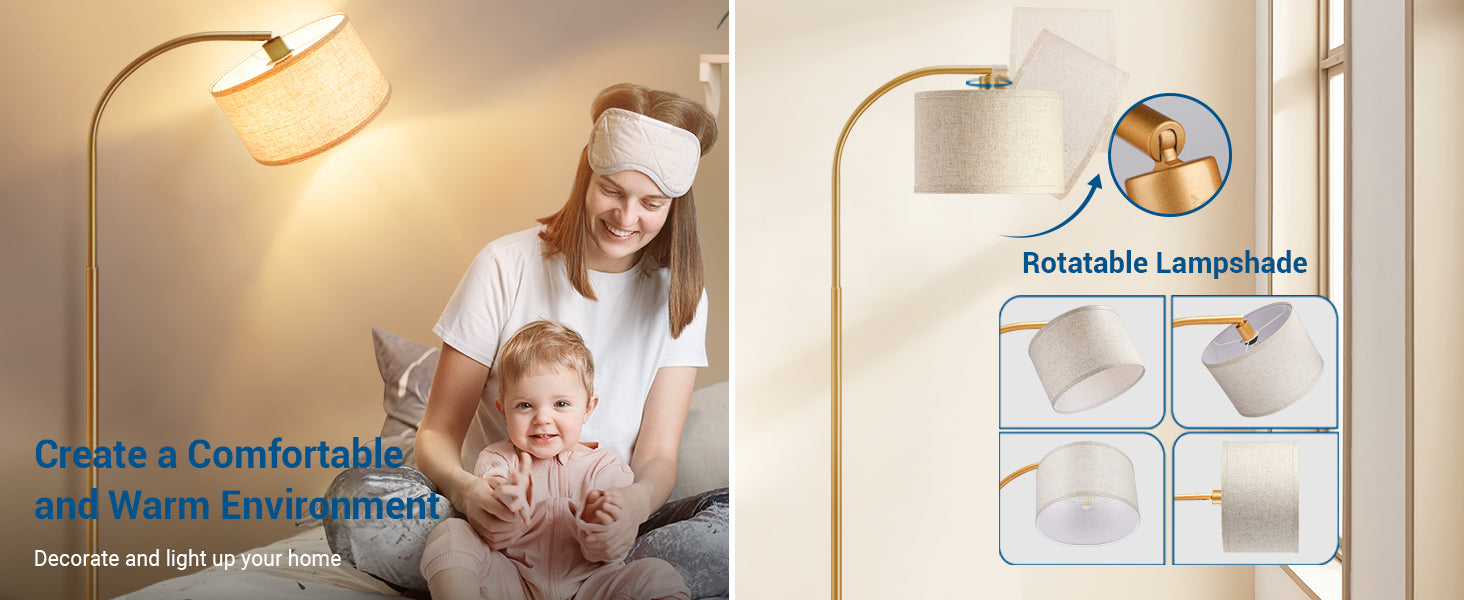 DEWENWILS Modern Gold Arched Floor Lamps with Adjustable Lampshade, Standing Tall Arc Lamp, Corner Reading Light for Living Room, Bedroom, Office, Simple Design Farmhouse Style (Gold)-F1HLFL04F
