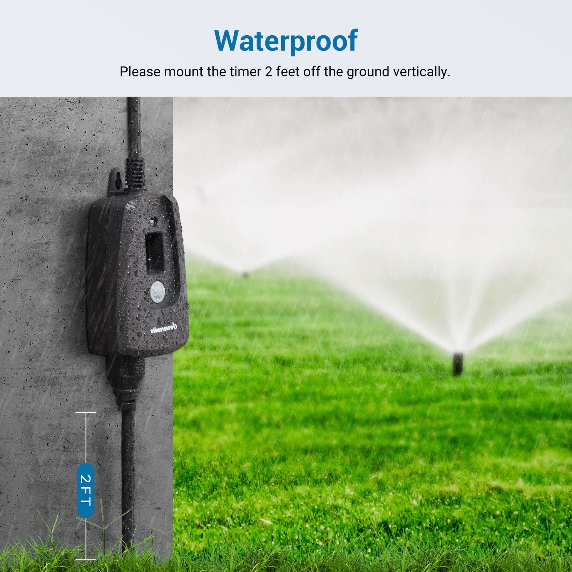 【WATERPROOF】 The waterproof material allows the timer to operate even on rainy or snowy days. A swivel safety cover on the outlet helps to prevent dust and water from entering the outlets. To ensure that no water splashes into the outlets, please mount the timer in a vertical position at least 2 feet above ground when using it outdoors.