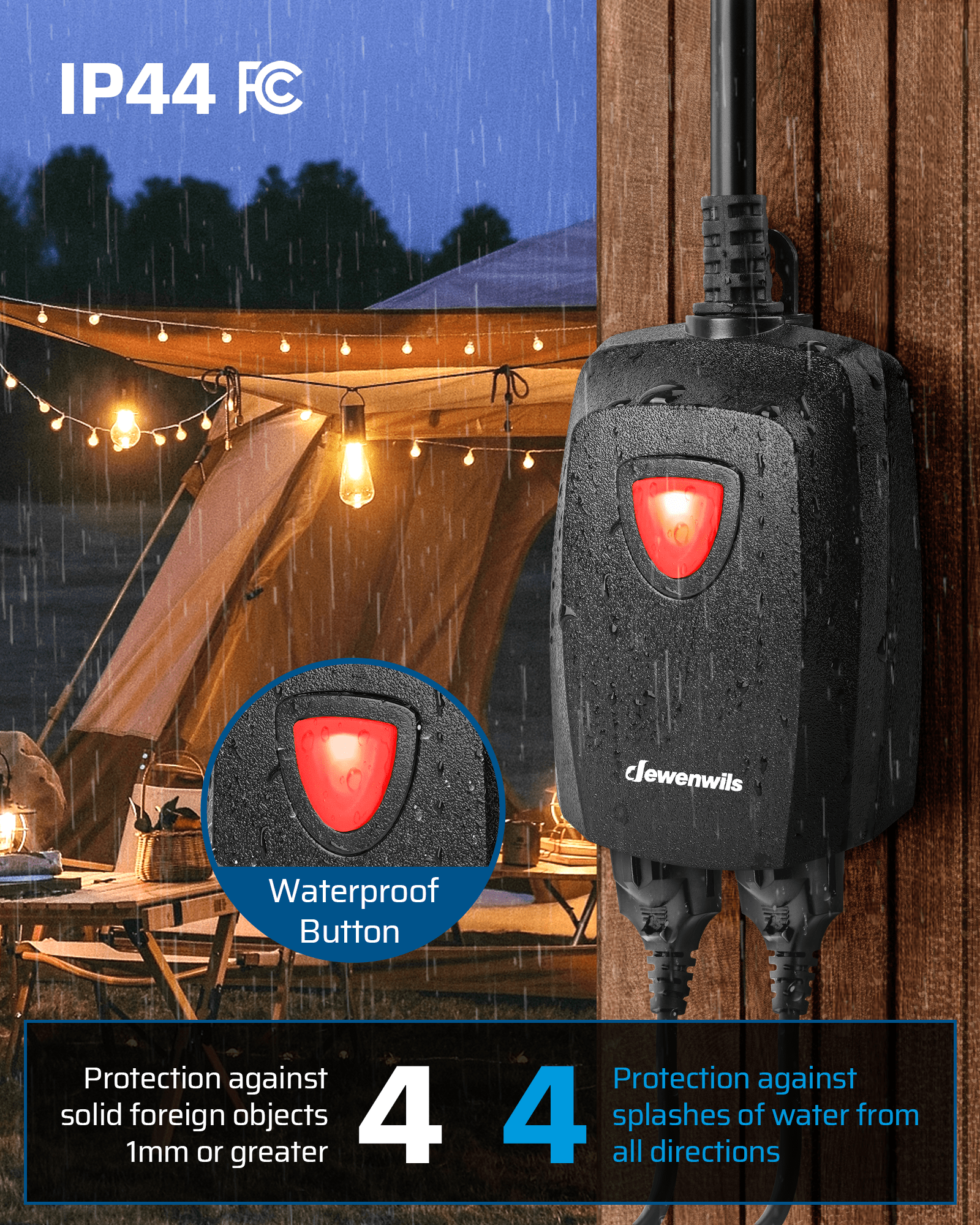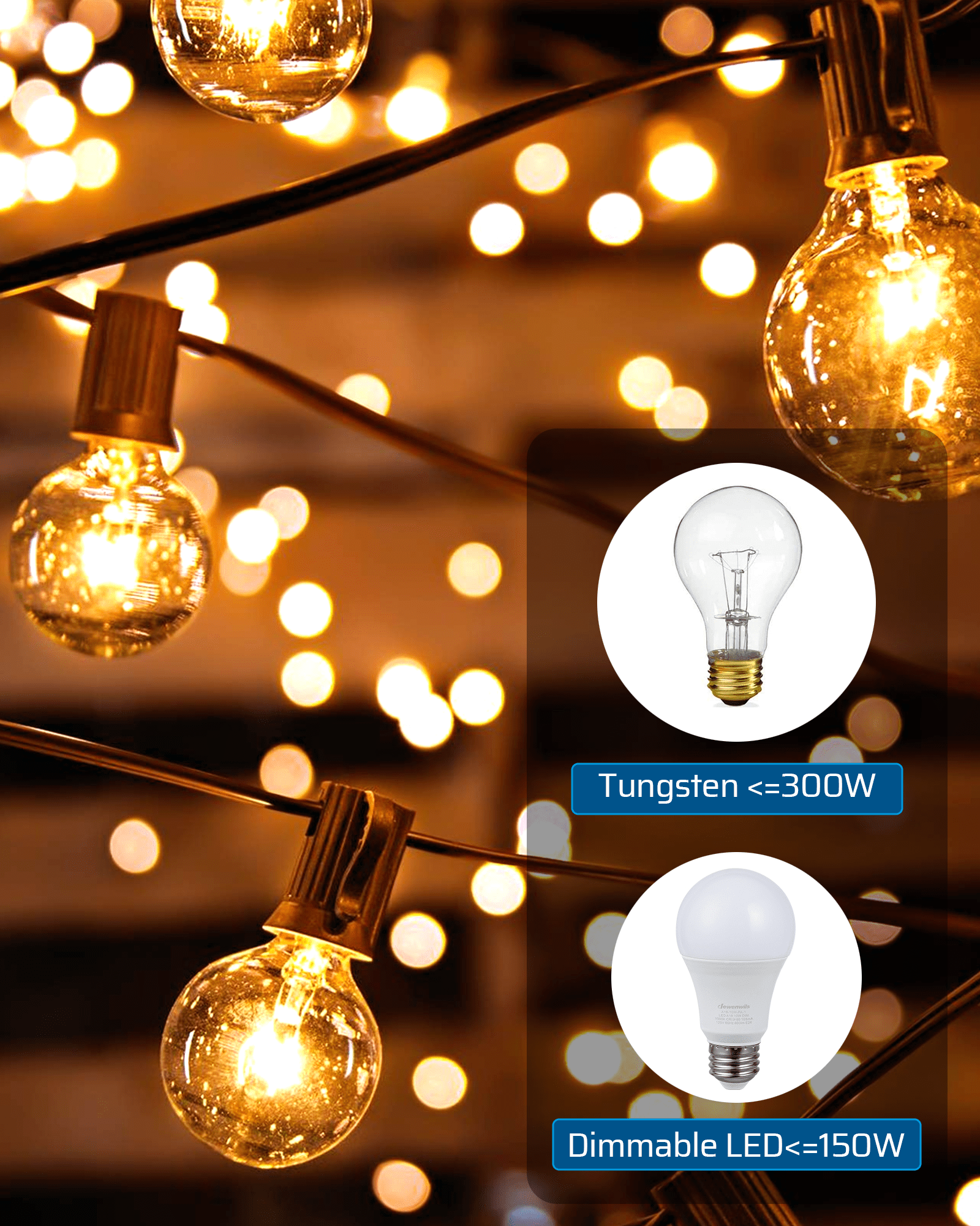 【WEATHERPROOF DIMMER】With a durable and sturdy PC shell and an 8-inch SJTW 14/3C heavy-gauge thick extension cord, this string lights dimmer can be safely used both indoors and outdoors. It is resistant to abrasion, moisture, cold, and exposure to sunlight.