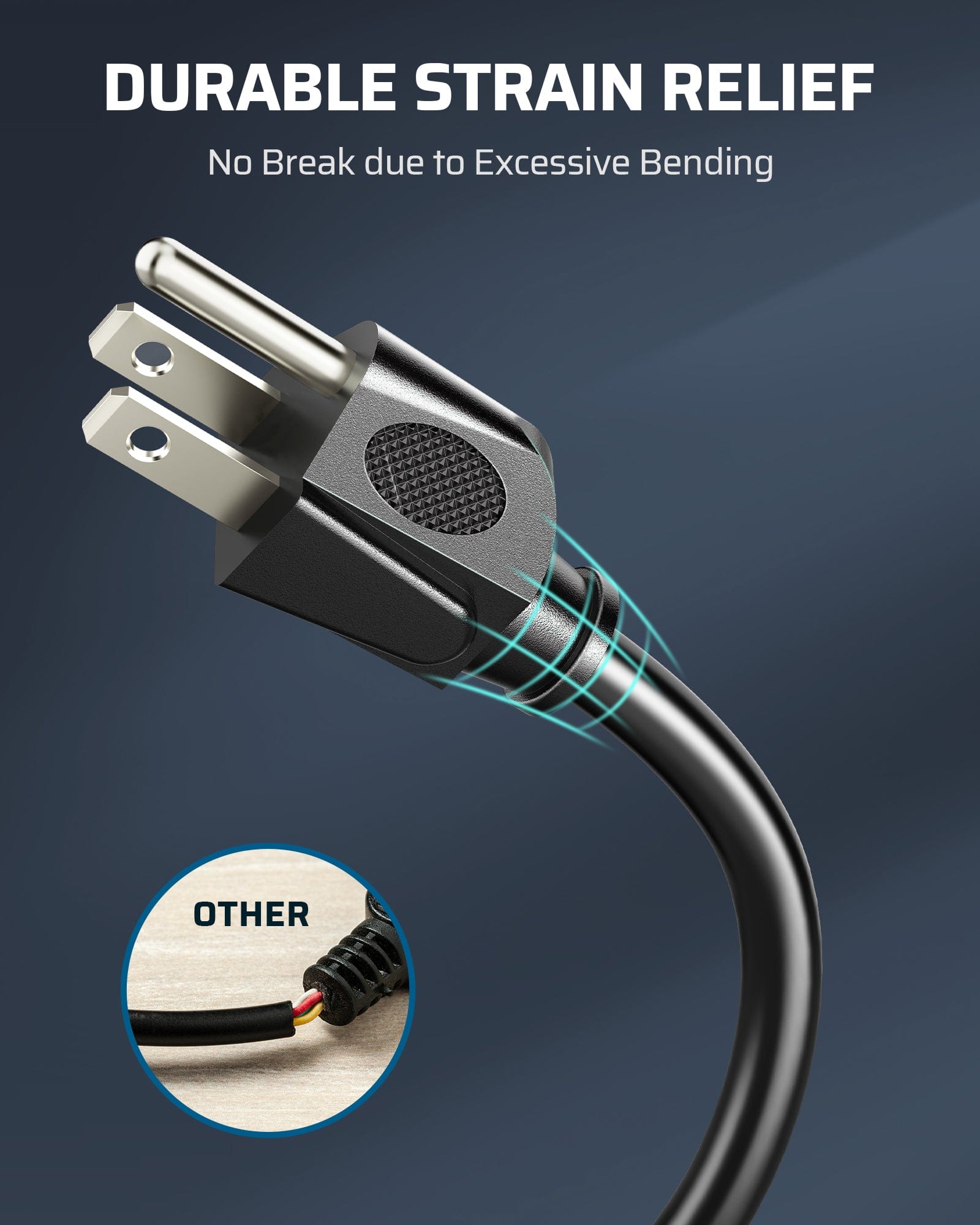 【HIGH QUALITY DURABLE EXTENSION CORD】This heavy-duty power extension cord has a 125V/15A/1875W power rating, all-copper wire construction, reinforced blades, double black jacketed cords, and a full-molding design. It's certified to ETL standards and built to last, making it a reliable choice for all your power needs.