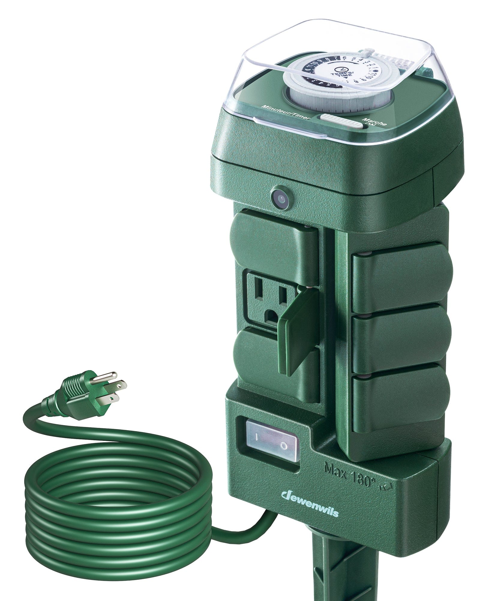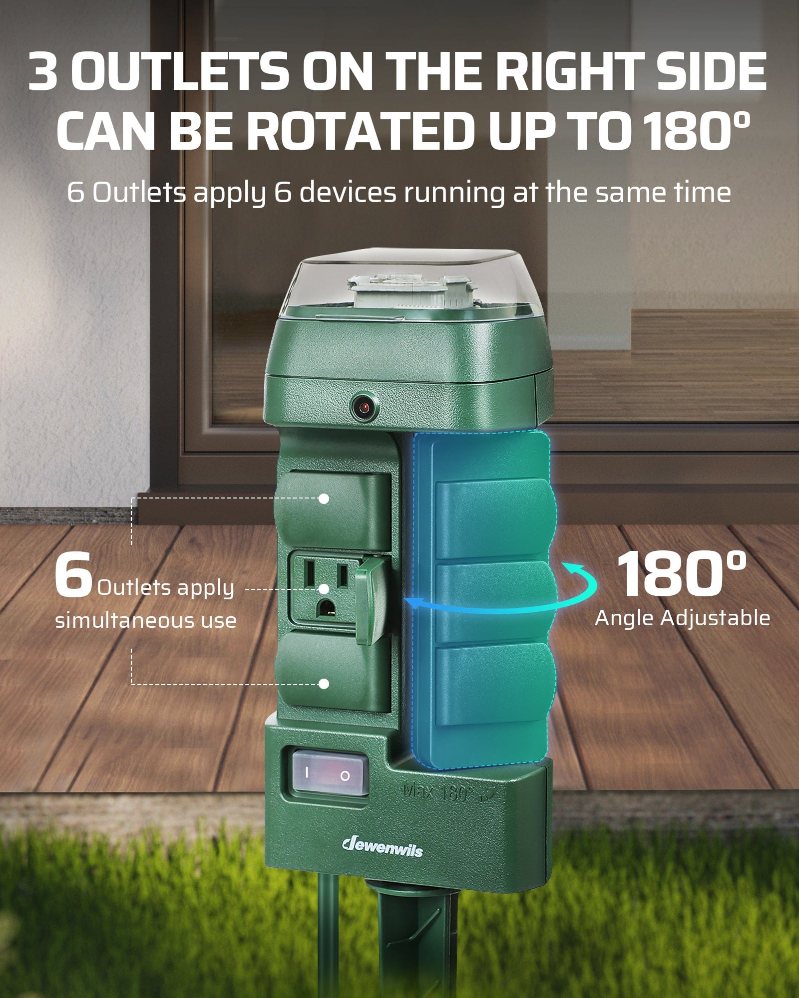 DEWENWILS Outdoor Mechanical Power Stake Timer, Waterproof, 6 Grounded Outlets(3 180°Rotatable), 6ft Extension Cord, Yard Stake for Outdoor Lights, Sprinklers, Garden, 1625W/13A-WSHOYS16M