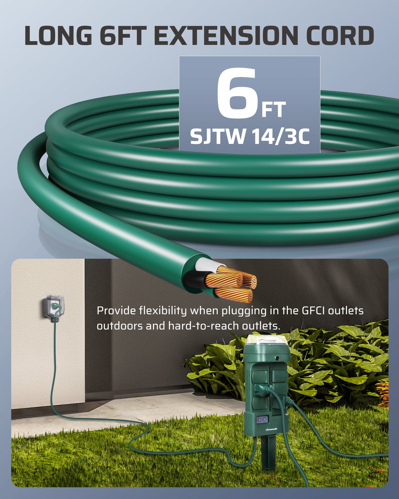 【ROTATING OUTLETS & 6 FT CORD】The timer has three fixed outlets and three additional outlets that can be rotated up to 180°, making it suitable for plugs in any direction. The 6ft extension cord allows for a larger installation range, making it perfect for outdoor Christmas lights, ponds, pool pumps, and more.