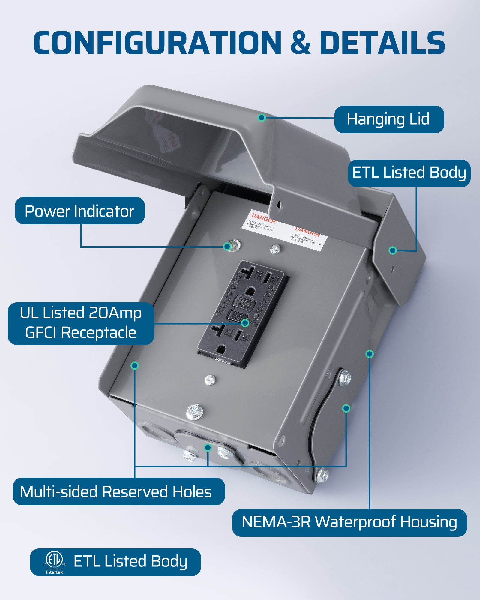 【Reliable GFCI Protection】ETL-certified box with a UL-certified 20 AMP WR and TR GFCI outlet ensures safe and reliable power by cutting off electricity during ground faults, this electrical outlet cover is ideal for outdoor backyard use