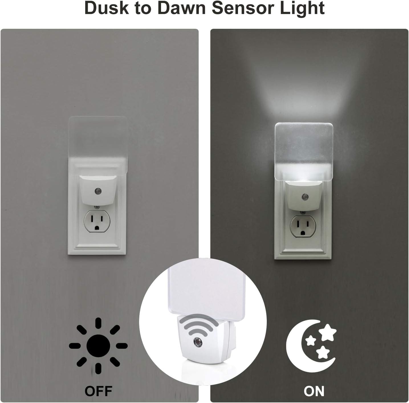 The night light brightens up the room when it is getting dark, you will never walk around blindly in the dark; ideal for kids' room, hallway, bedroom, nursery, staircase and more.