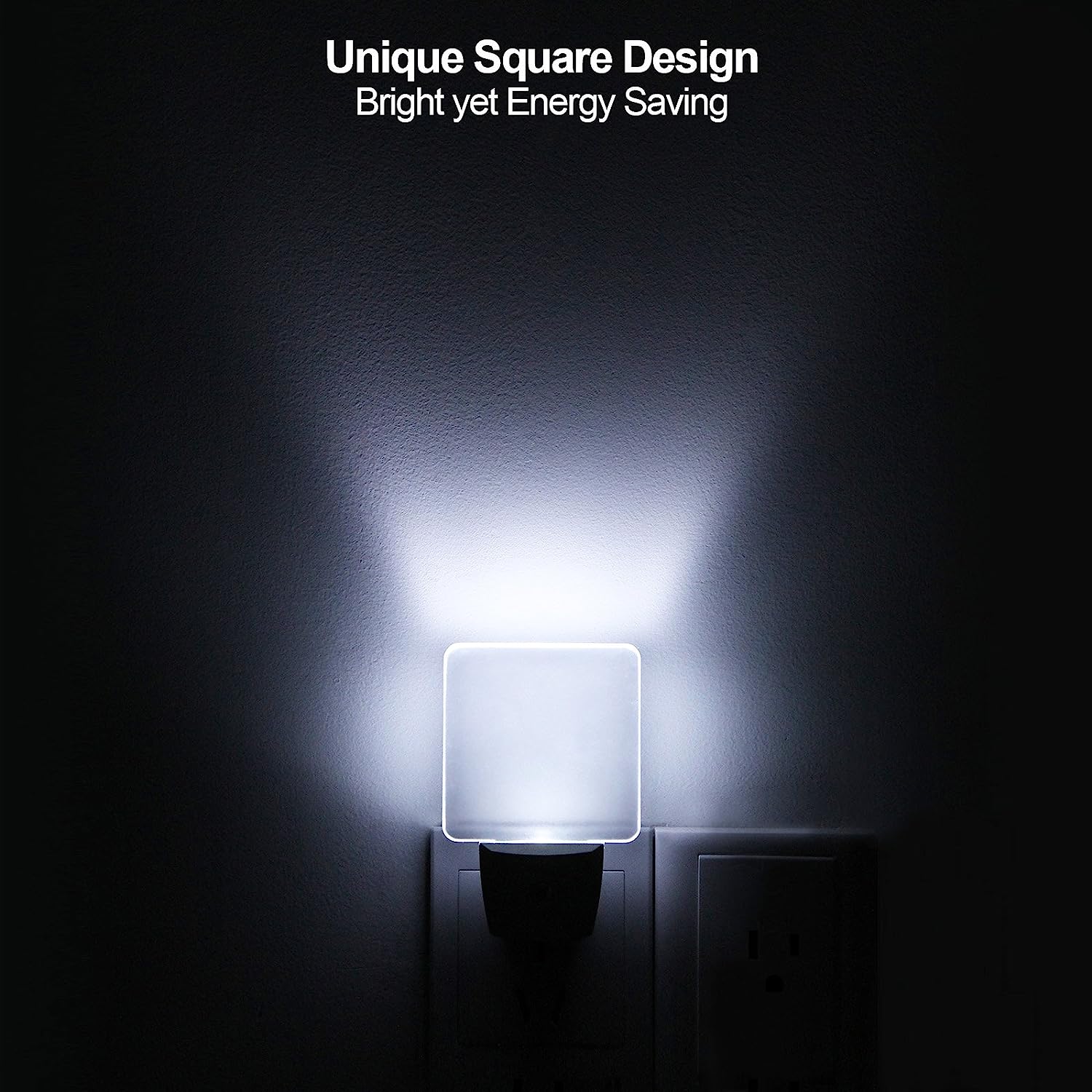 【UNIQUE DESIGN】The clear and square acrylic material, when placed flat against the wall, emits a white diffused light. The non-polarized plug does not obstruct the second outlet on the wall.
