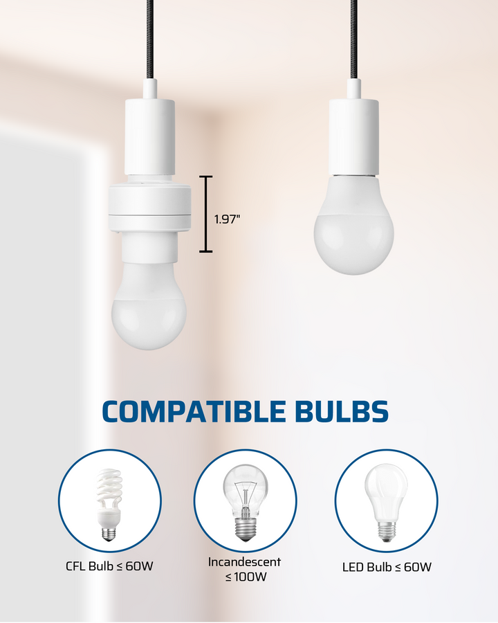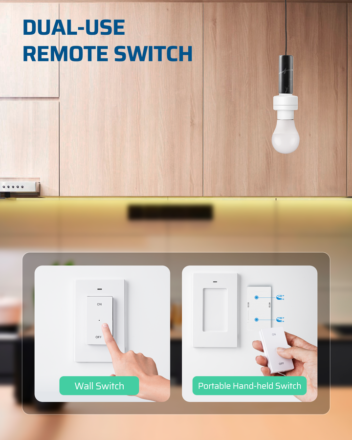 DEWENWILS Remote Control Light Socket, Wireless Light Switch for Pull Chain Light Lamp Fixtures, 100FT Range, No Wiring Needed, ETL Listed(1 Wall Mounted Controller+1 Bulb Base, Shorter Version) - HRLS11S-P1