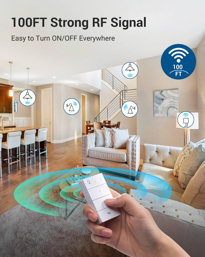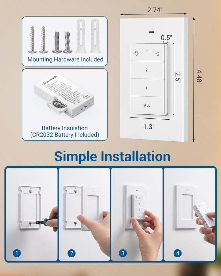 DEWENWILS Remote Control Light Socket, Wireless Light Switch for Pull Chain Light Lamp Fixtures, 100FT Range, No Wiring Needed, ETL Listed(1 Wall Mounted Controller+3 Socket, Shorter Version) - HRLS13S-P1