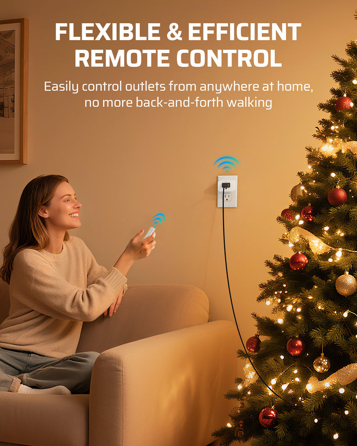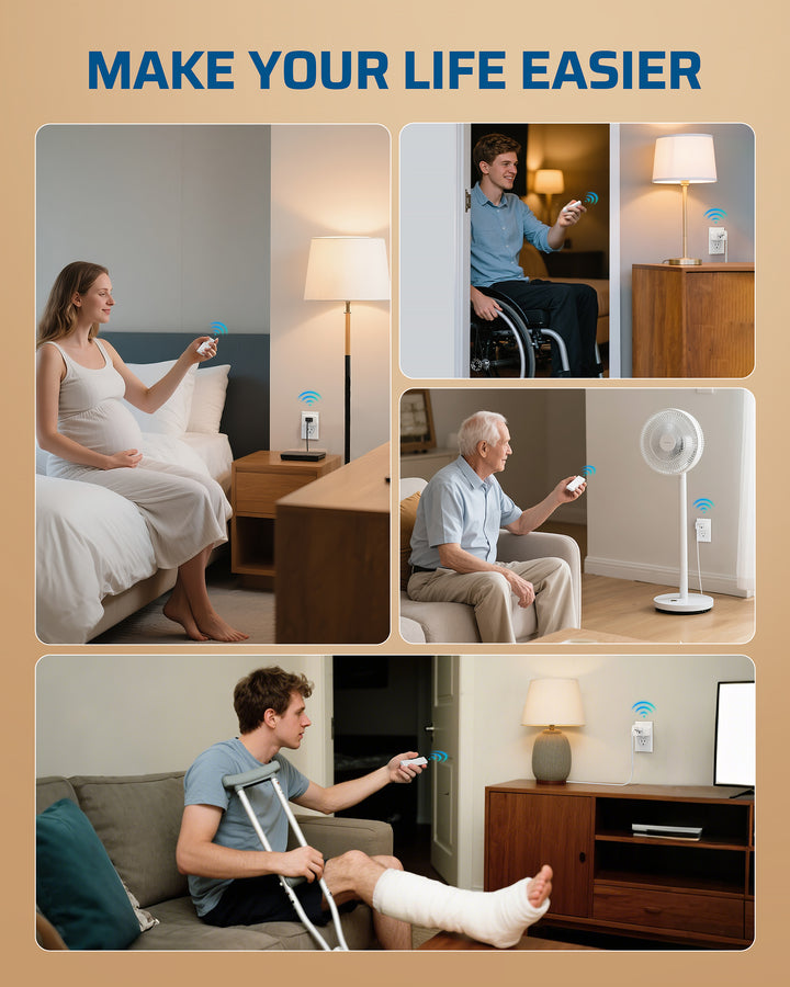 - [Plug & Play] The remote outlet switch requires no Wi-Fi/Bluetooth or complicated setup, plug in and work instantly; compact size won’t block adjacent sockets, and the handheld remote allows you to easily control appliances in hard-to-reach locations; for seniors, pregnant women, and people with limited mobility