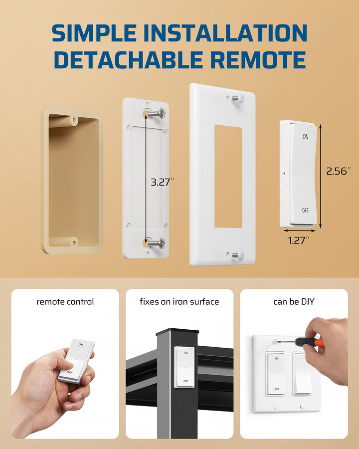- [Flexible Magnetic Remote Control] Remote plug outlet features a magnetic design with a detachable base, allowing it to function as both a fixed wall switch and a handheld remote; adapting to different household needs