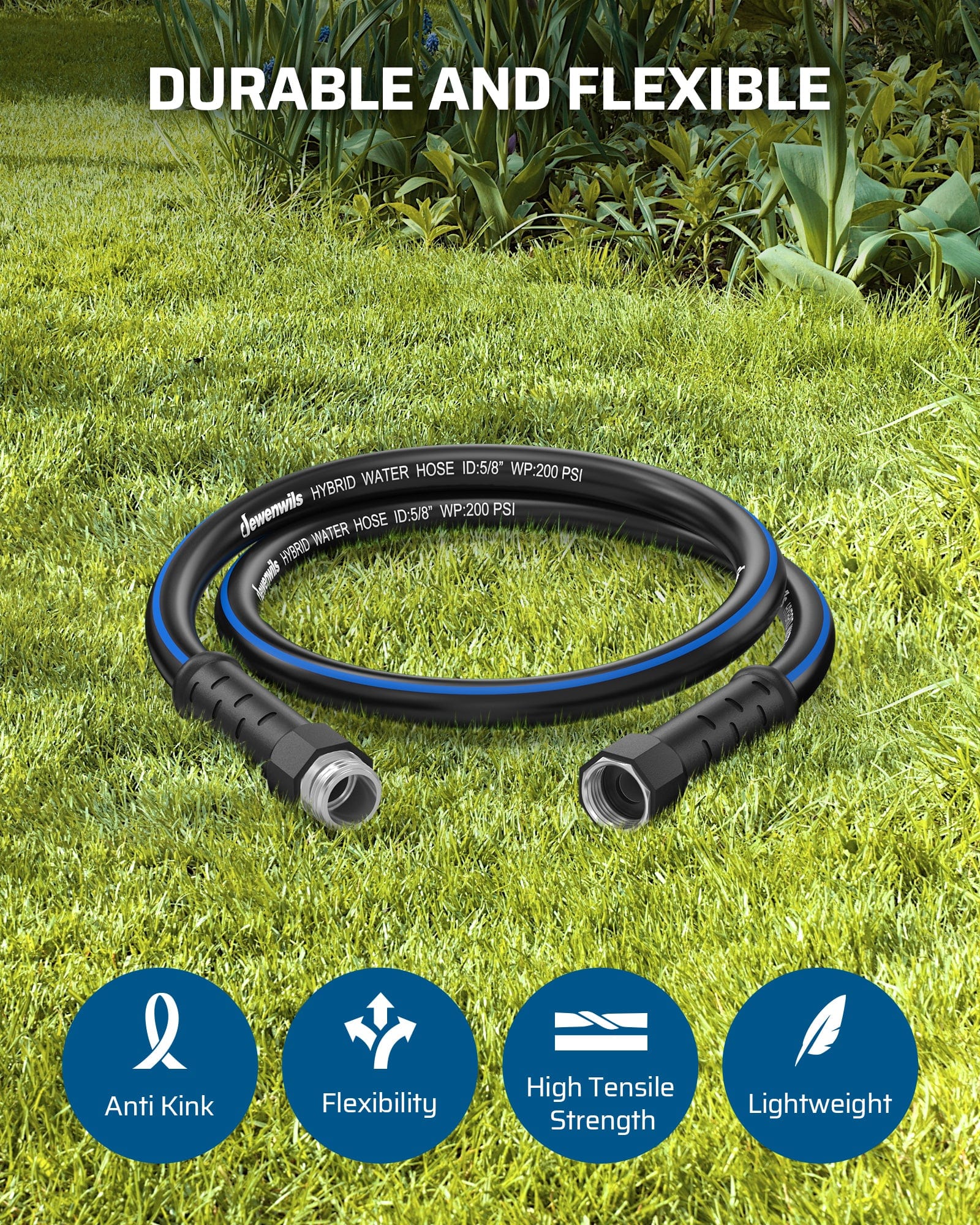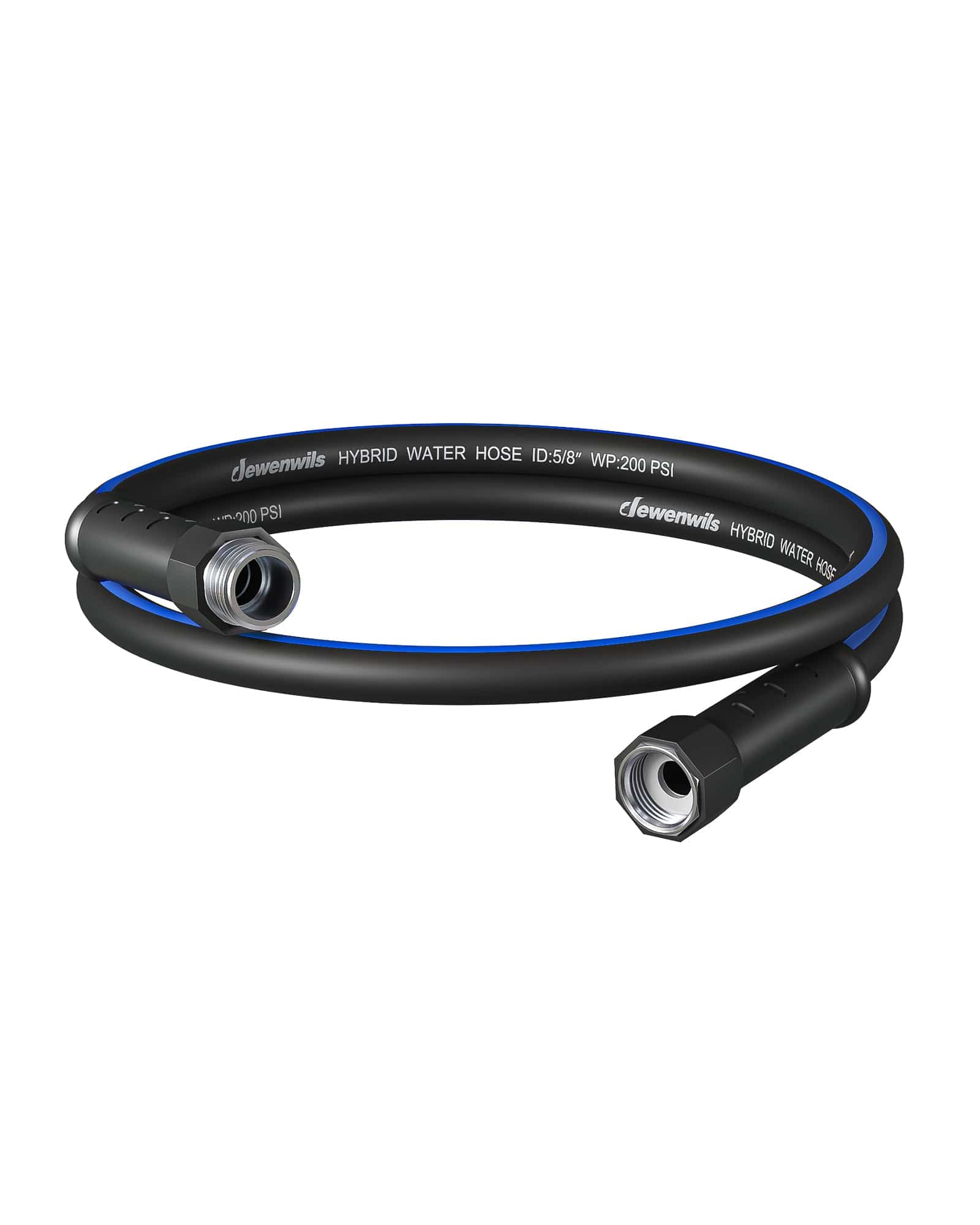 DEWENWILS 5ft 5/8" Black Blue Garden Hose , Hybrid Water Hose, 3/4 Inch Solid Fittings-HHGH05E