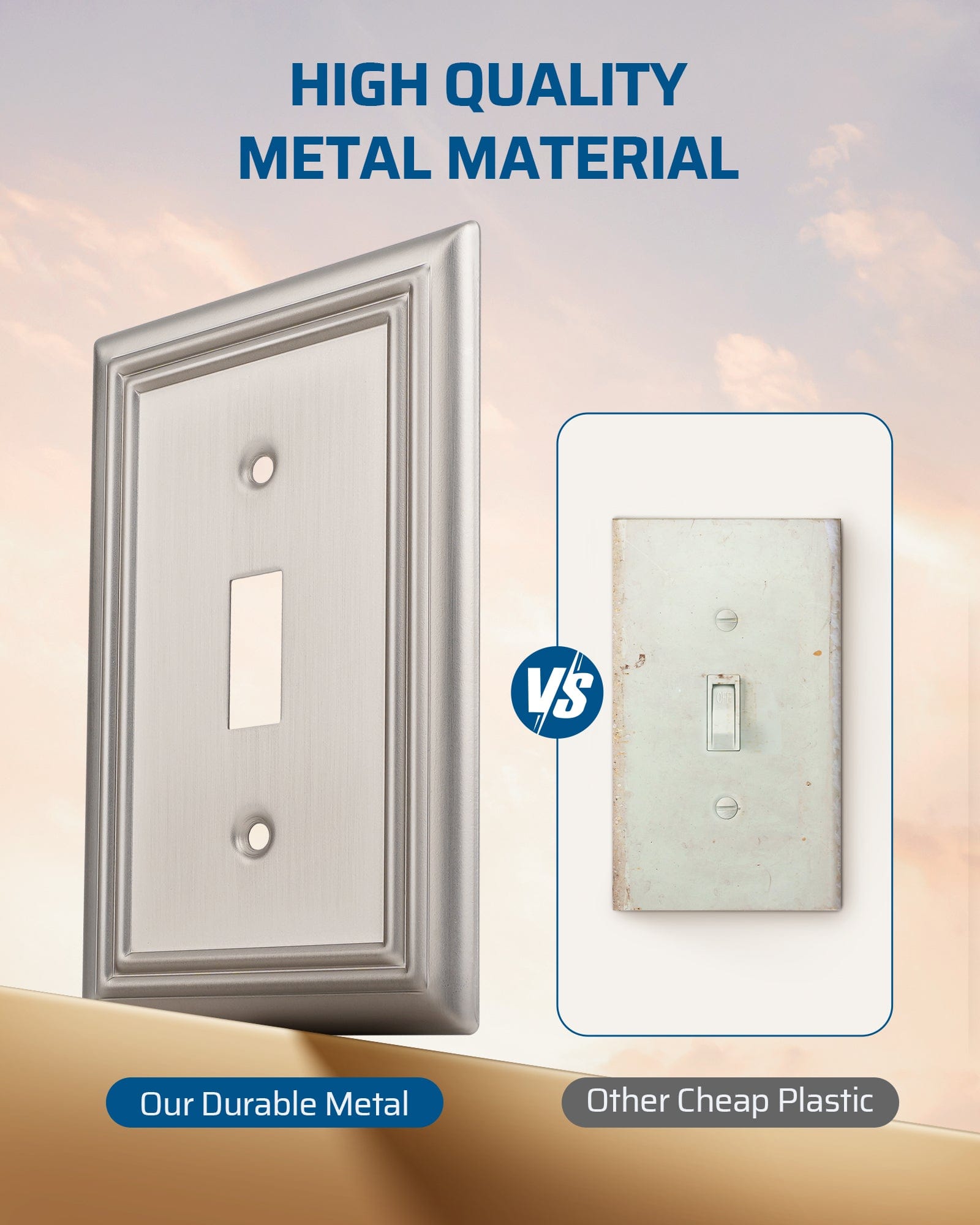 【Durable Metal Wall Plate】Metal outlet covers offer excellent heat, deformation, and corrosion resistance compared to plastic panels, ideal for long-term use; also easy to clean, durable and long-lasting