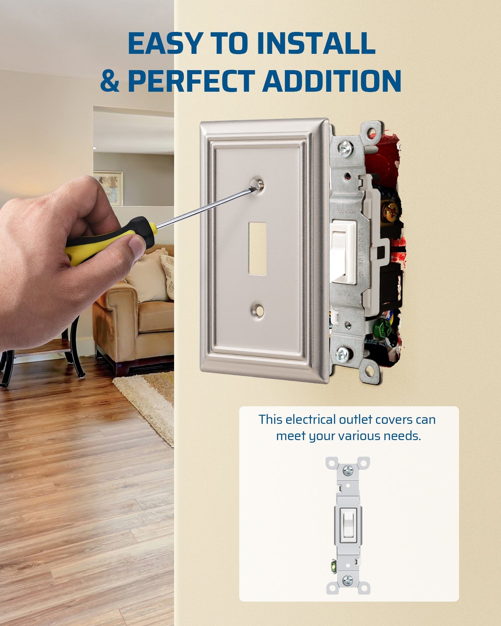 【Modern Stylish Wall Plate】Satin nickel outlet covers complement various decorative styles, ideal for living rooms, bedrooms, bathrooms, and kitchens; simple and modern look add a touch of elegance to your room, also durable and long-lasting