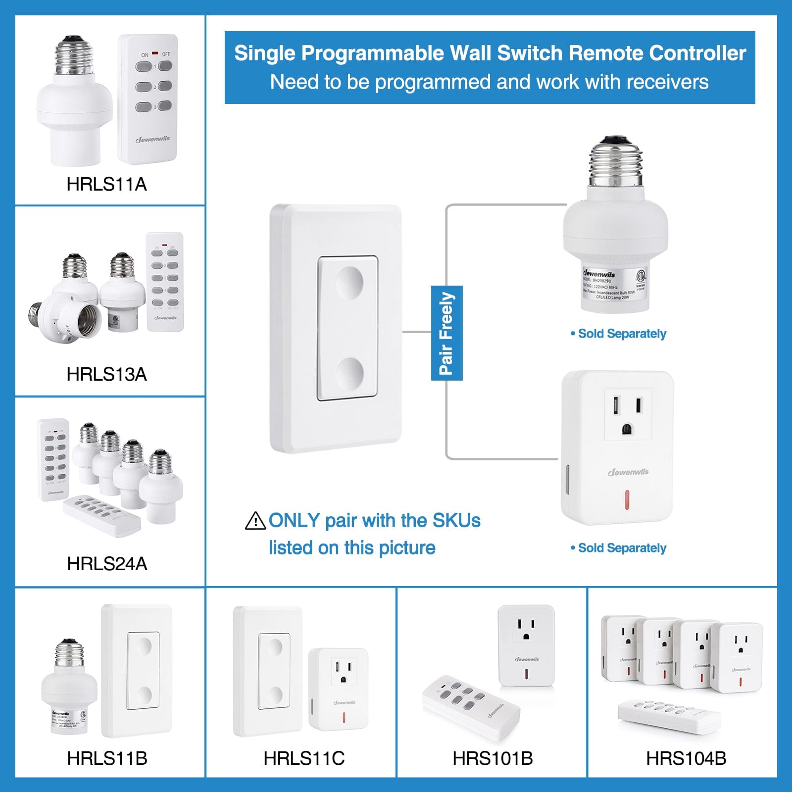 【 Programmable Wall Switch 】This single remote controller does not include a receiver and needs to be programmed with receivers (sold separately) before use. Please note that you will need to purchase the receivers separately and program them with the remote controller for proper functionality.