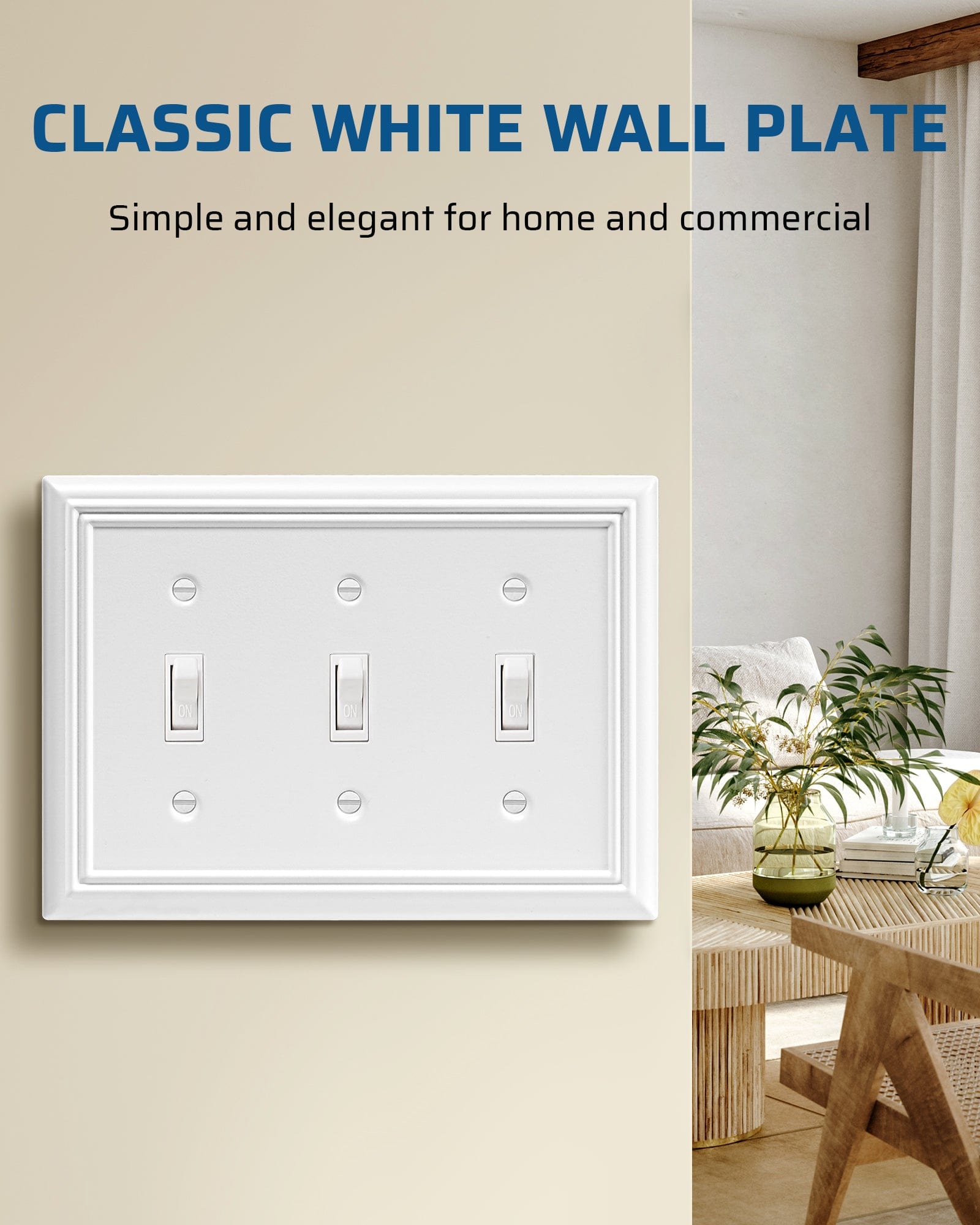 DEWENWILS Triple Toggle Wall Plate, Metal Outlet Cover, Standard Size 3-Gang Light Switch Cover,Durable Receptacle Cover (2 Pack, White)-HTWP32G