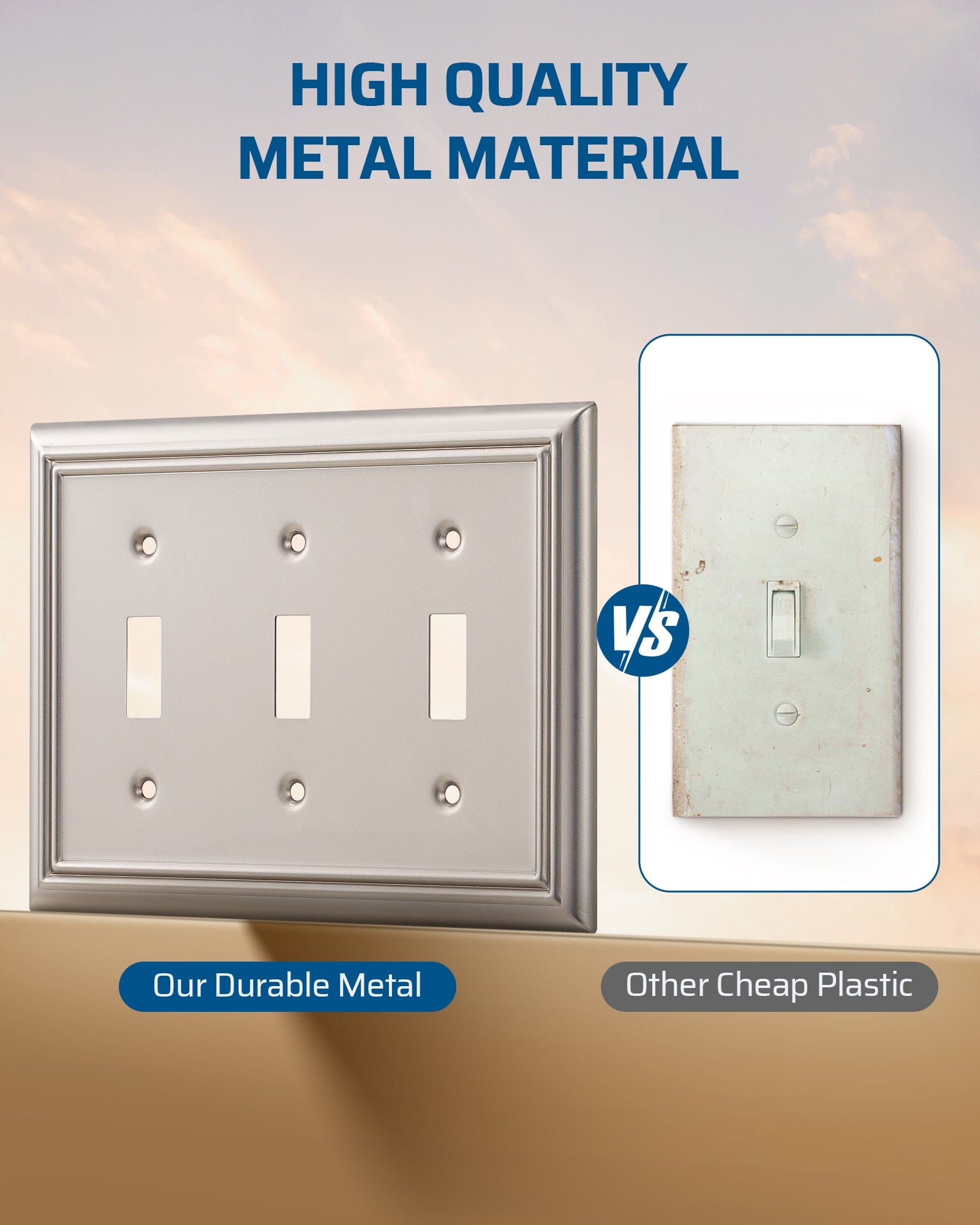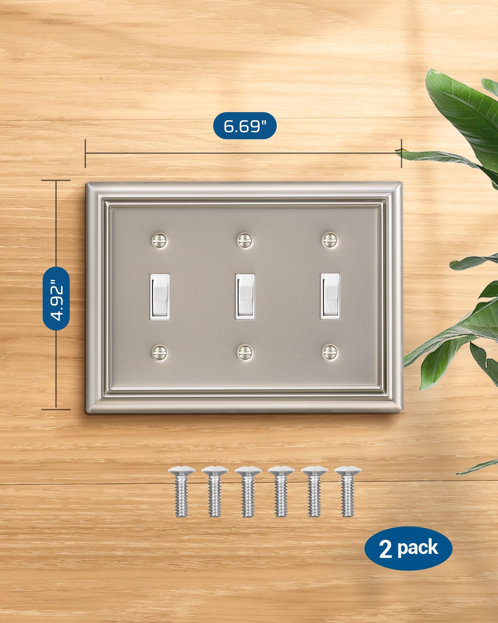 DEWENWILS Triple Toggle Wall Plates, Satin Nickel Metal Outlet Covers, 4.92" x 6.69" Switch Plate Cover, Light Switch Cover Plates for Home Decor, 2 Pack-HTWP32F