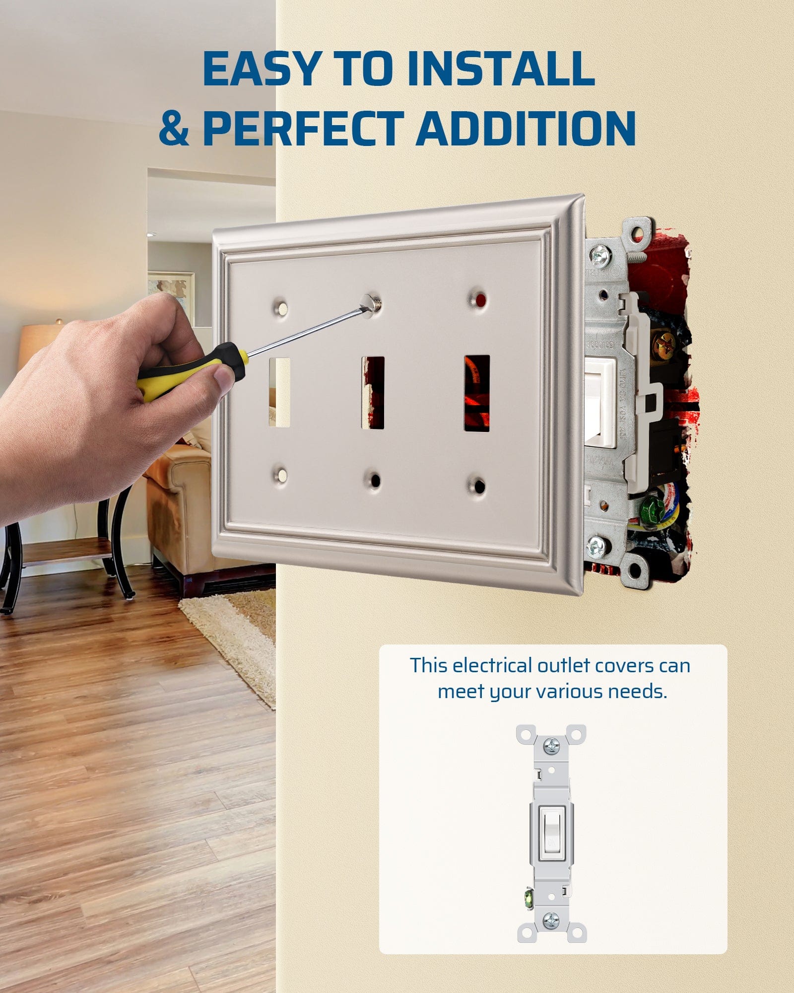 【Sleek & Elegant Design】Satin nickel finish complements many decorative styles, ideal for home remodeling; our metal wall plates enhance the look of various rooms, such as living rooms, bedrooms, bathrooms, and kitchens, adding a modern and elegance touch