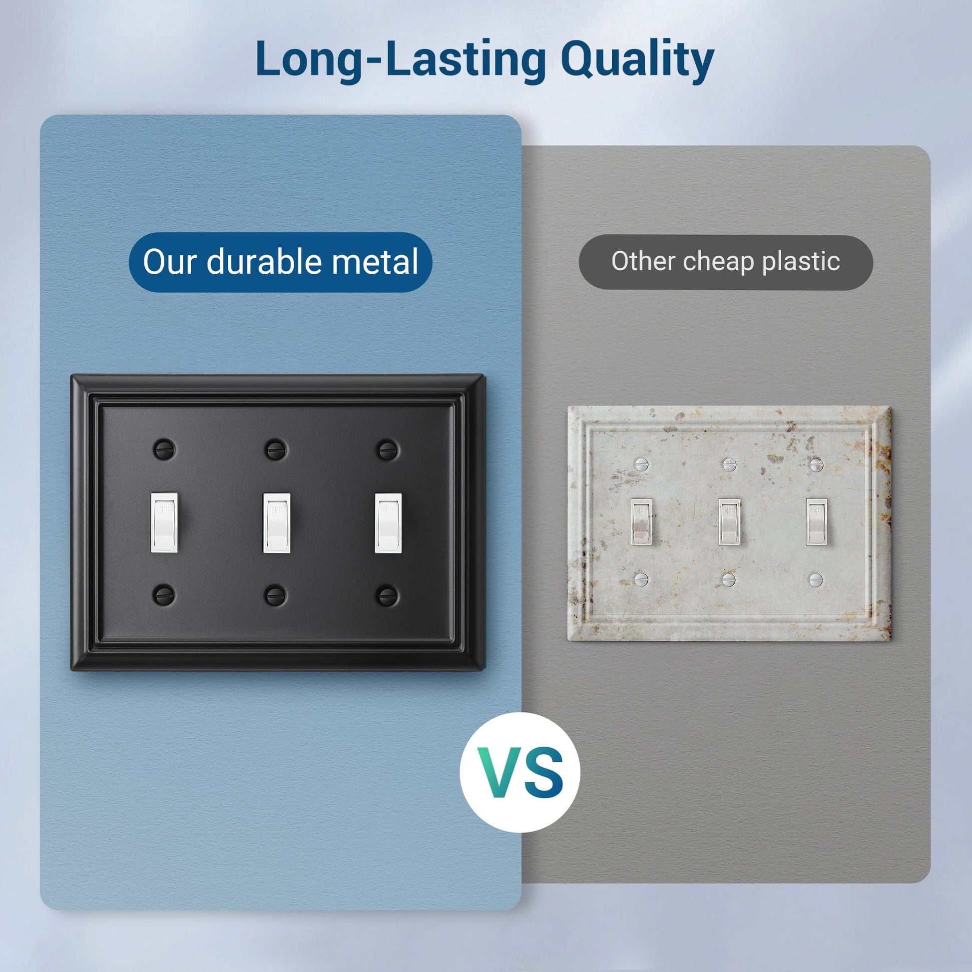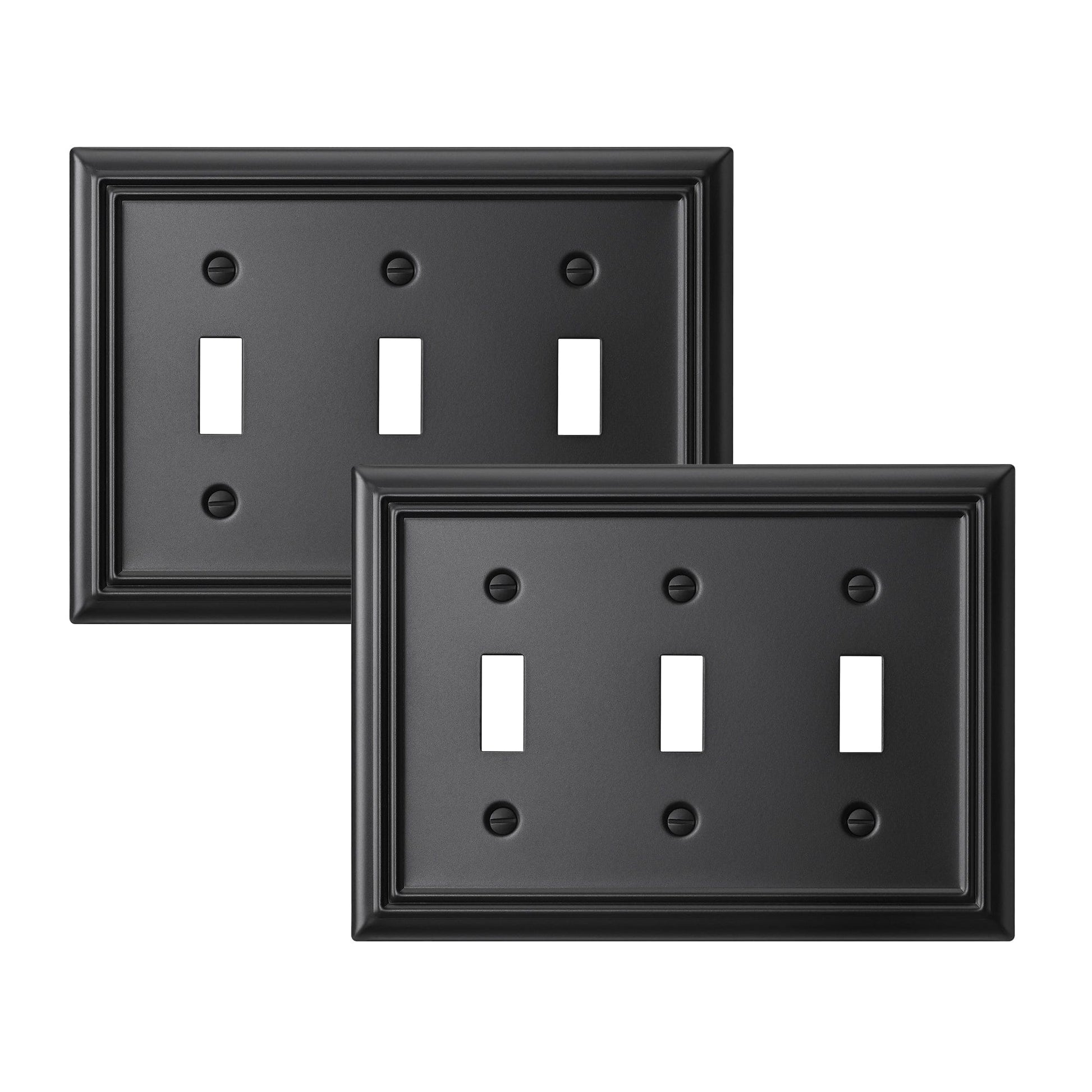 DEWENWILS 2 Pack Triple Toggle Wallplates, Black Light Switch Covers, Heavy Duty Metal Material-HTWP32D