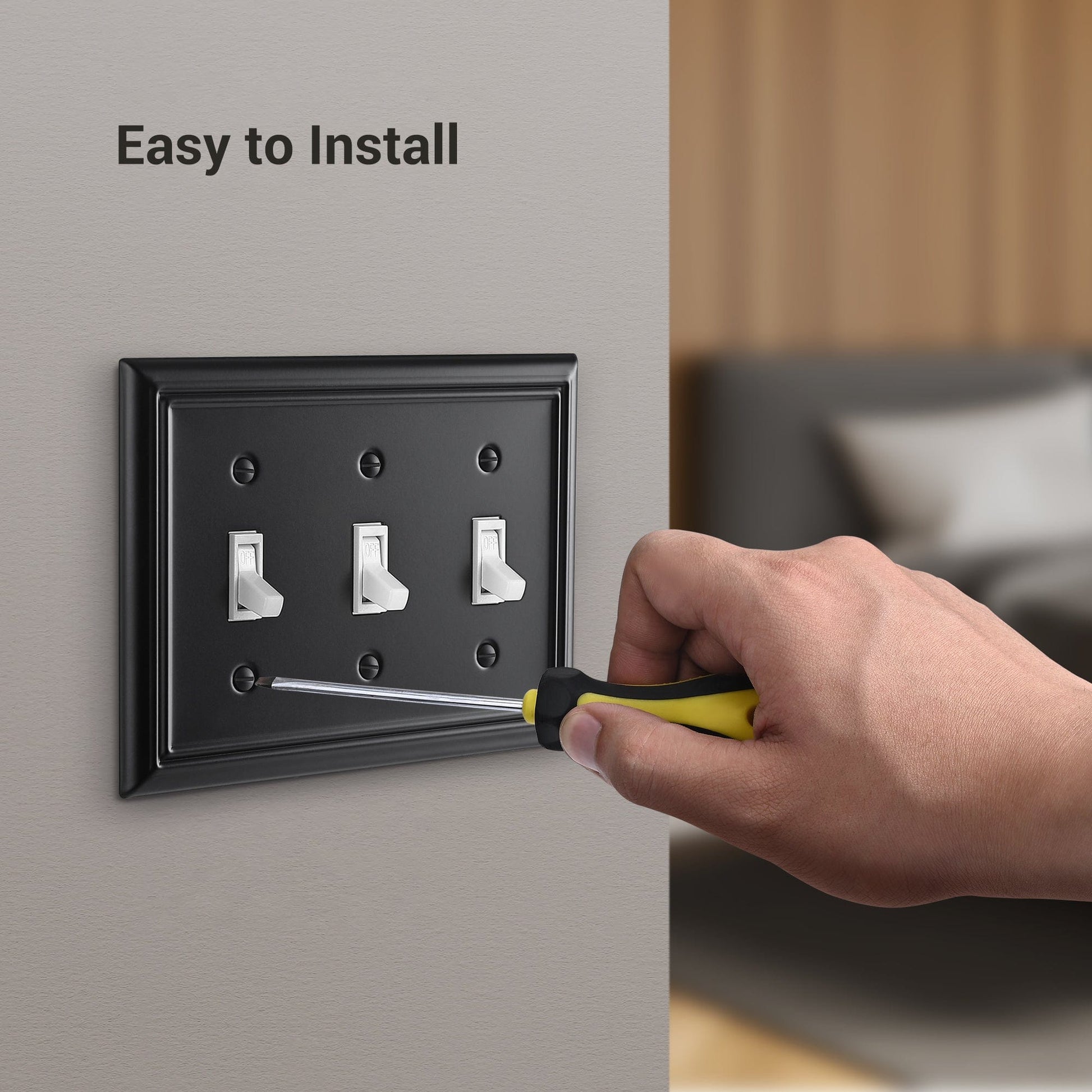 The metal light switch plate has a profile black finish which will give your home a classic look. With the metal material, never worry about rustiness. Besides, the smooth surface makes it easy to clean. Perfect for bathroom, living room, office, or other places you need.