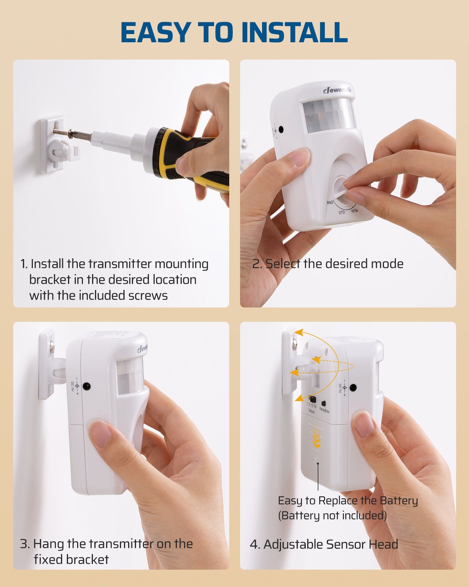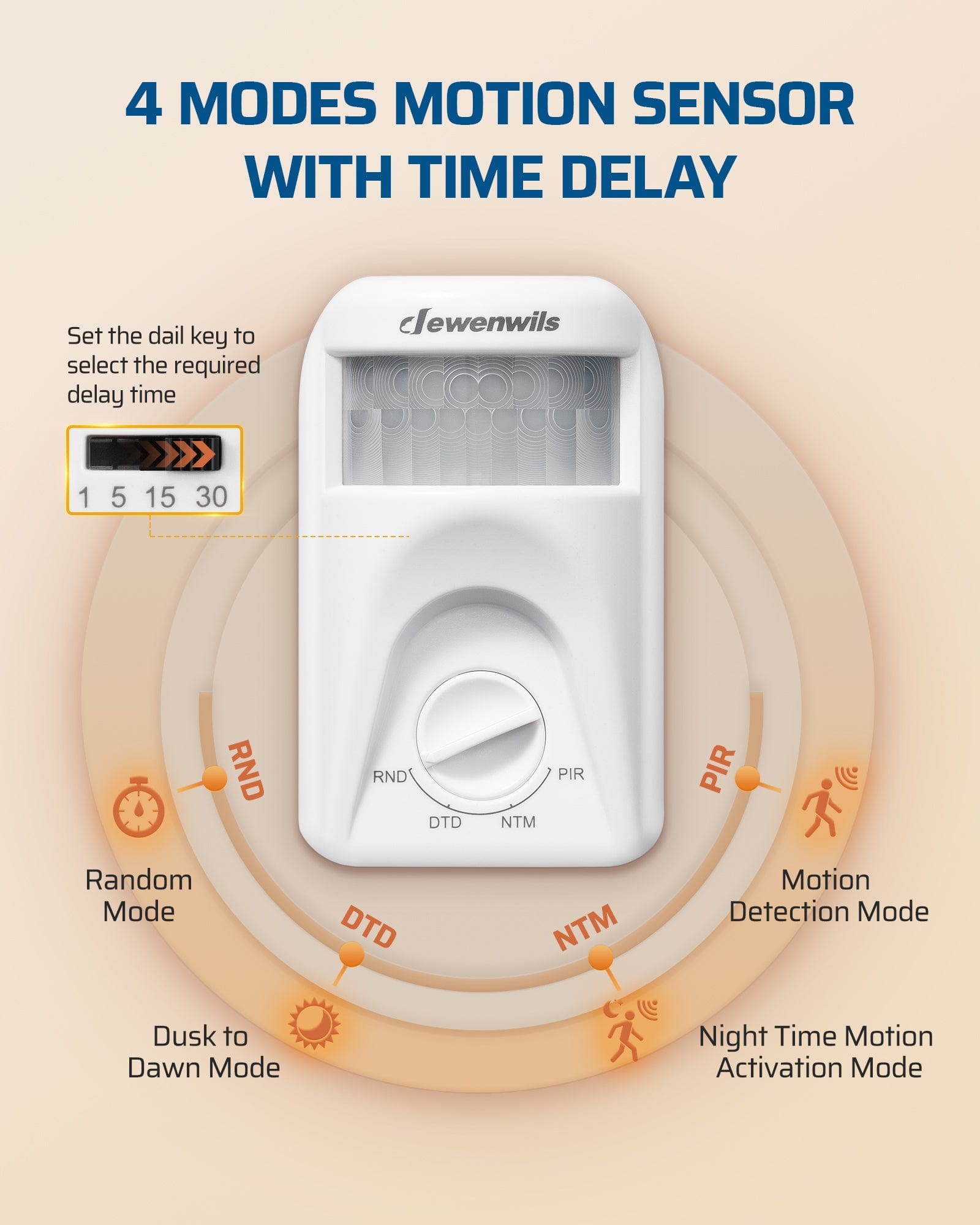 DEWENWILS Wireless Light Switch with Dusk to Dawn & PIR Motion Sensor, 4 Modes, 120° Sensing Angle, 20ft Detection Range-HMSR01G