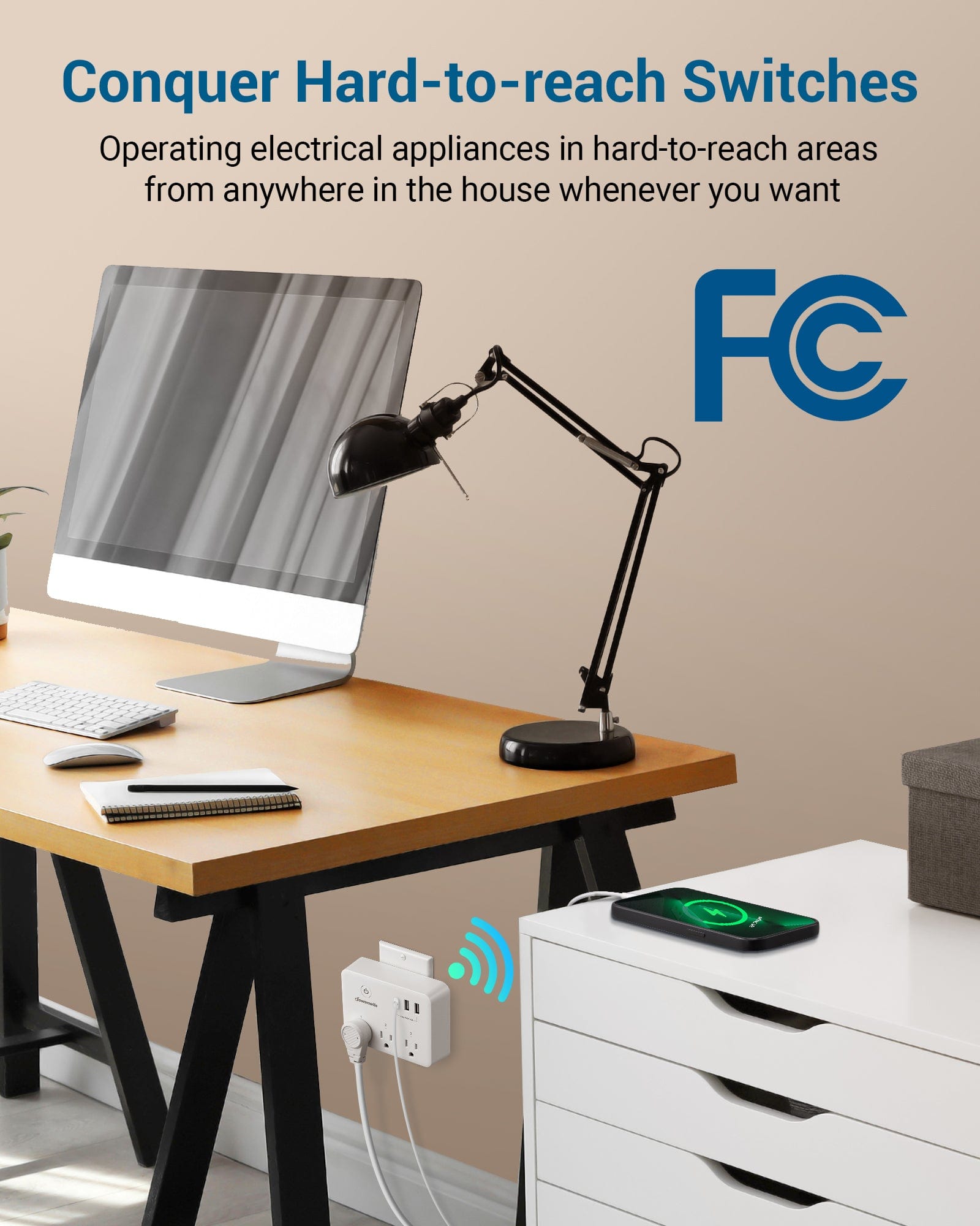 【Compact Design】It only takes up 1 socket, making it easy to install in small spaces and behind furniture, seamlessly fitting into walls. The device features 2 USB-A outlets and 1 USB-C outlet, providing you with more options and convenience (Note: the USB outlets are not controlled by the remote control). We offer a 1-Year Warranty, and our customer support team is available at any time.