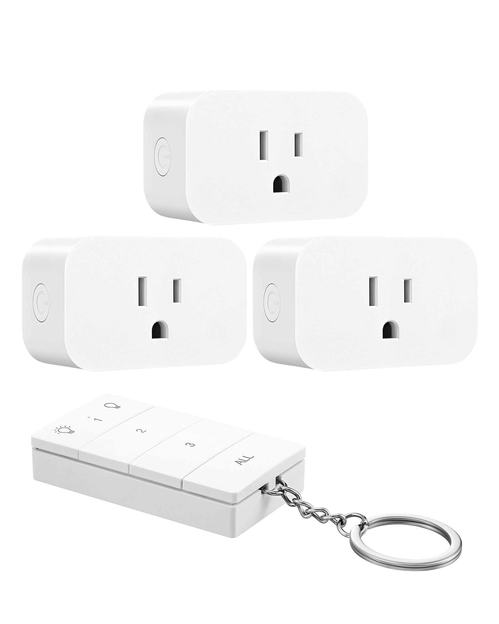 DEWENWILS Wireless Remote Control Outlet, No Wiring, Programmable & Expandable Electrical Outlet Switch, 100FT Control Range, 125V/15A/1875W Independent Control Outlet(1Remote+3 Outlets)-HRS103L1