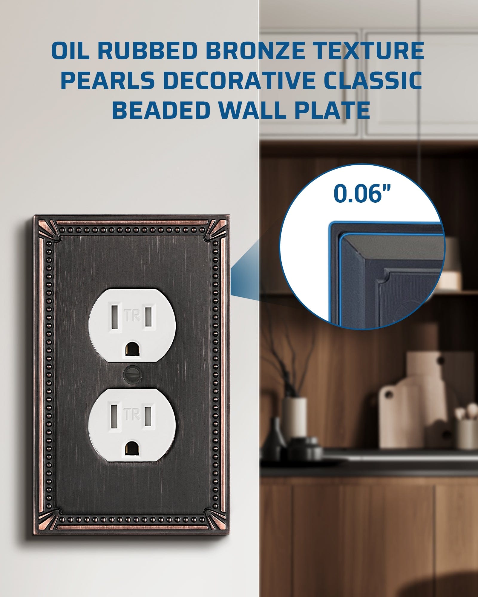 DEWENWILS 2 Pack Zinc Alloy Wall Plate Covers, 4.94"×3.03" Single Duplex Outlet Cover, Oil Rubbed Bronze Finish Light Switch Plate Cover, Sunken Pearls Decorative Wall Plates Electrical Outlet Cover-HDWP04B