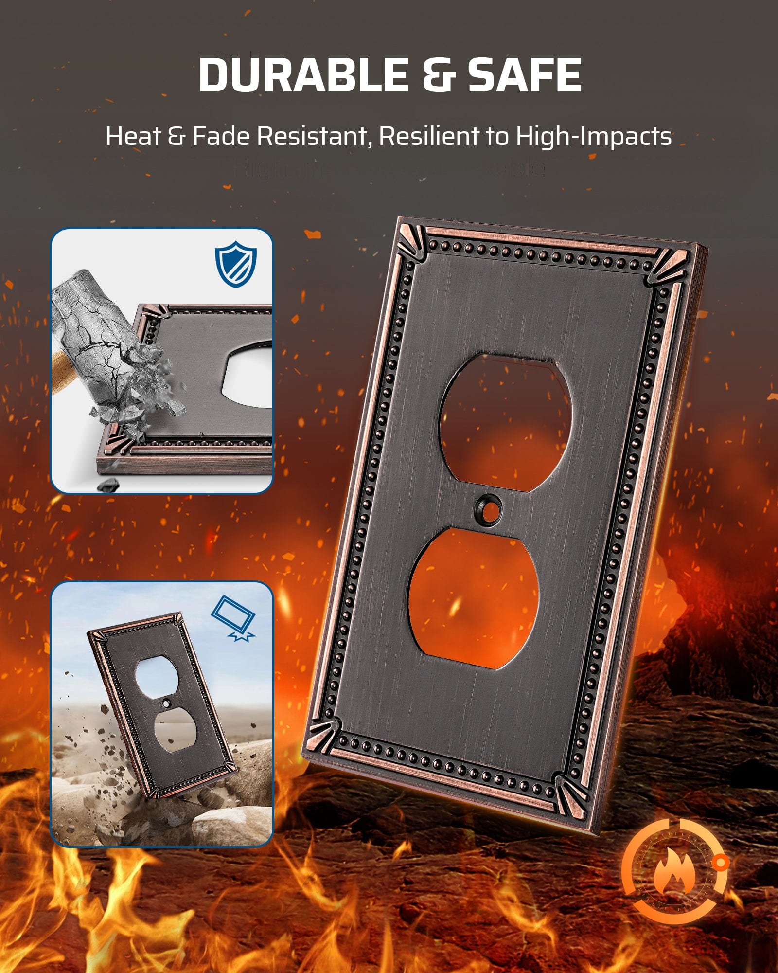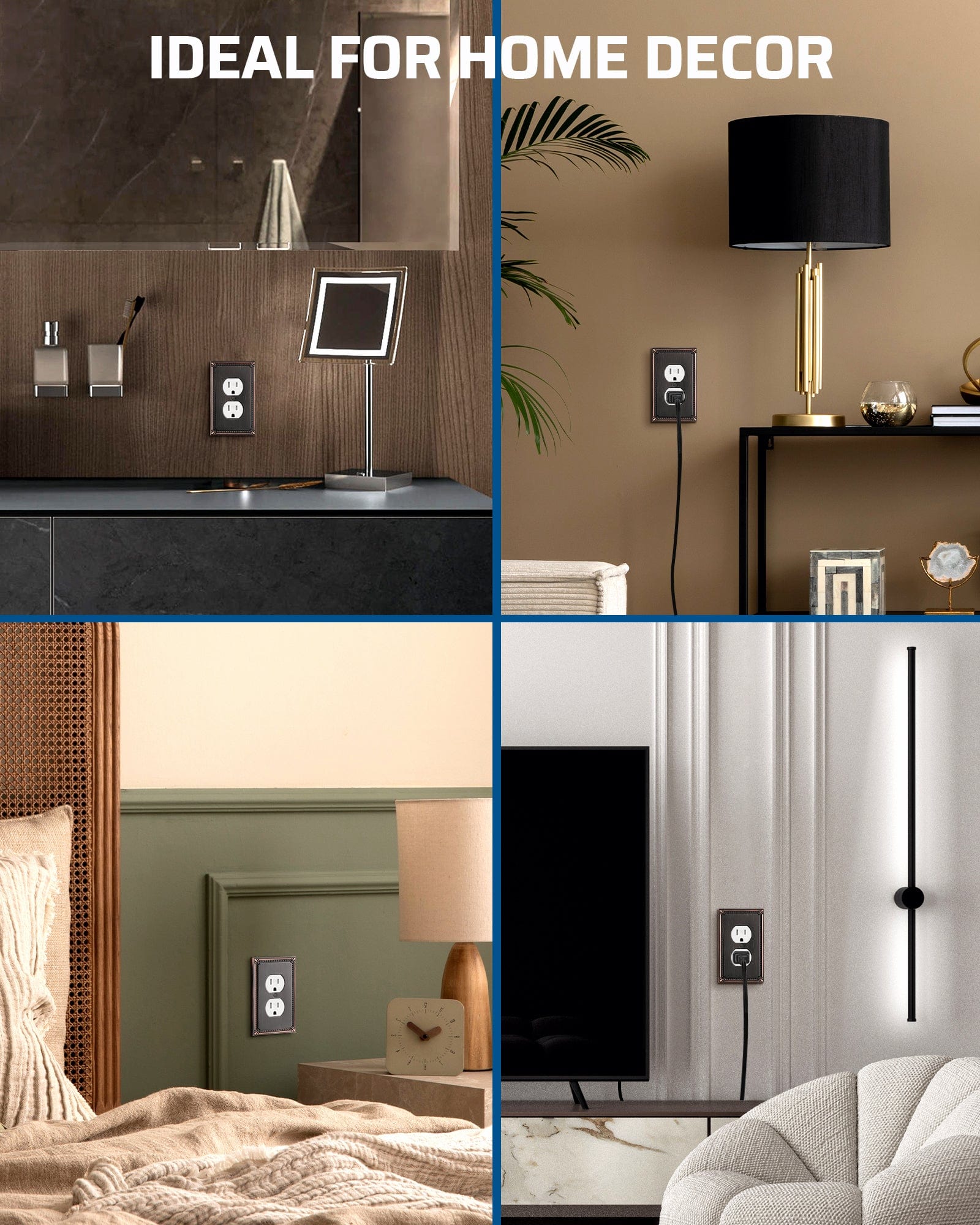 【Durable Zinc Alloy】Made from thick and sturdy zinc alloy, this metal wall plate is exceptionally durable and robust, more long-lasting than ordinary plastic wall plates, withstanding high temperatures, deformation, and corrosion; built to last in harsh conditions and is easy to clean with a simple wipe