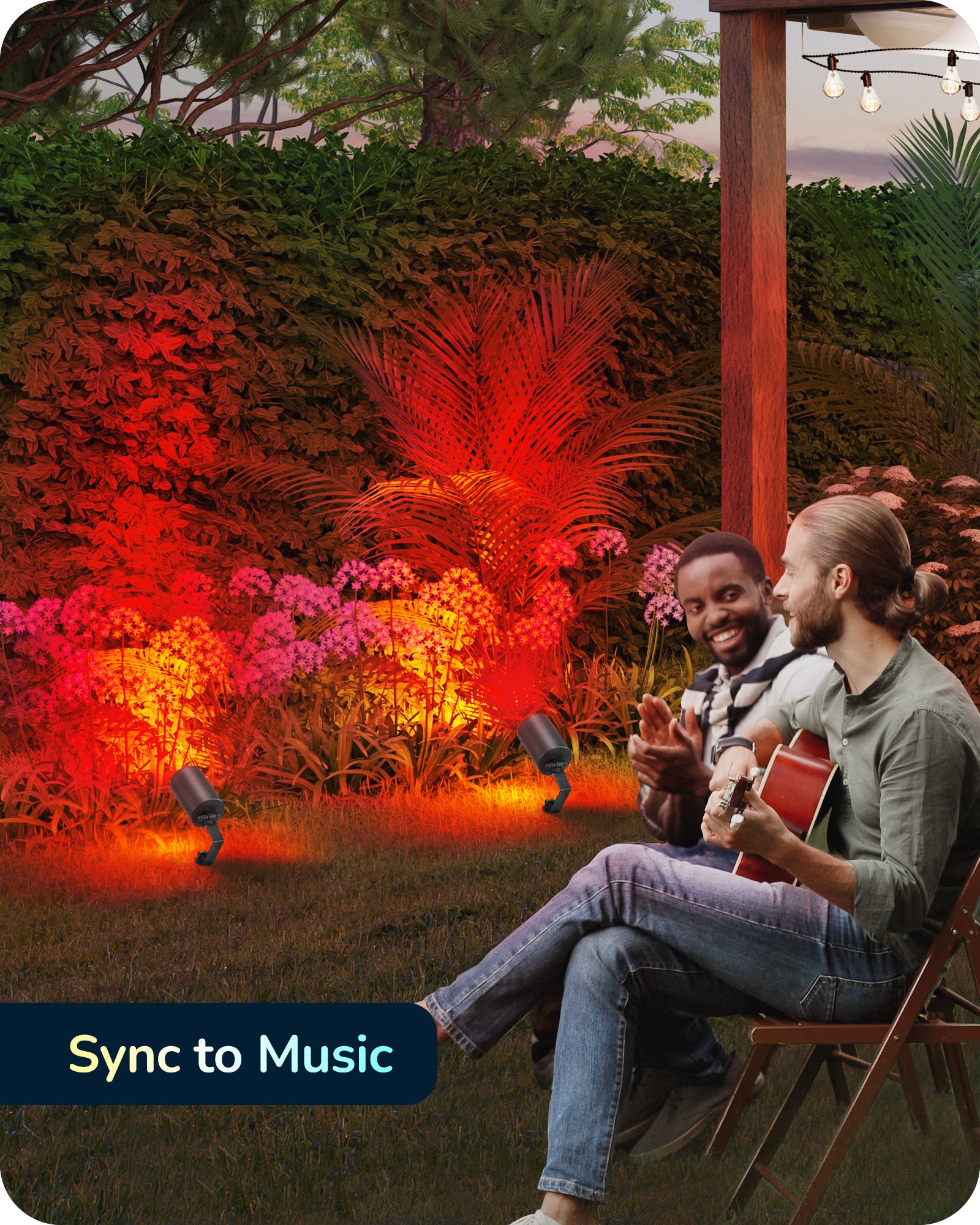 【12 Scenes Mode & Music Sync Mode】Smart LED landscape spotlights come with 12 pre-set scenes to design your own lighting effects; music sync mode for dancing in rhythm to your favorite tunes, ideal for outdoor decoration during Christmas, Halloween, or parties; timer function to set automatic on/off time freely